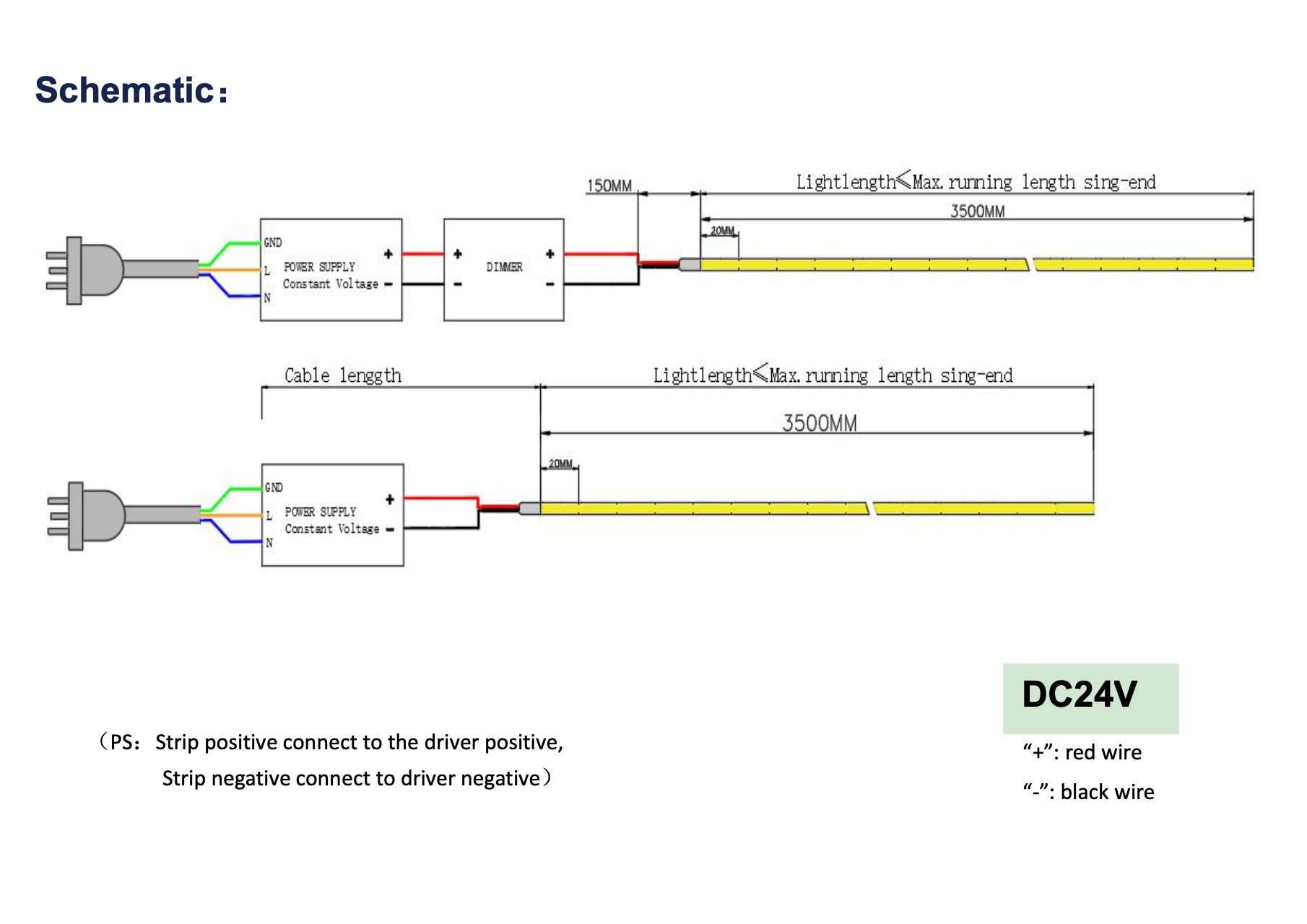 Preferowany sposób podłączenia: Połączenie dwustronne rolki 5m, z jednej strony nie więcej 3,50 m !!!