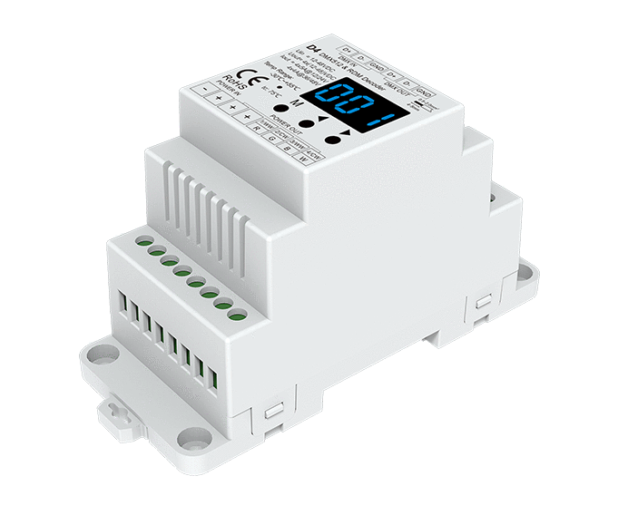 Dekoder D4 służy do sterowania wielokolorowym oświetleniem LED za pomocą protokołu DMX512.