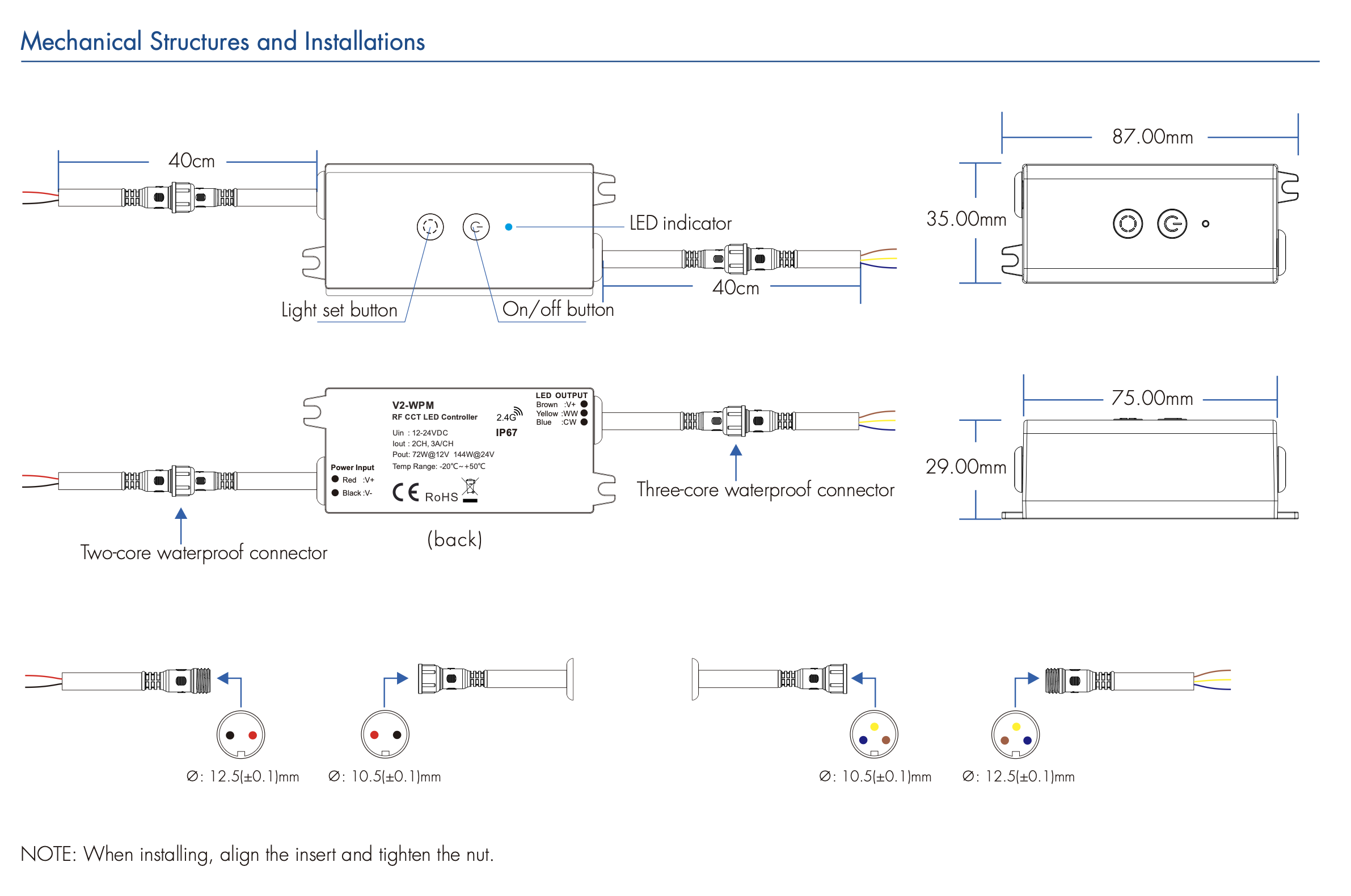 V2-WPM Sterownik LED CCTOdbiornik RF + Manual IP67 SKYDANCE