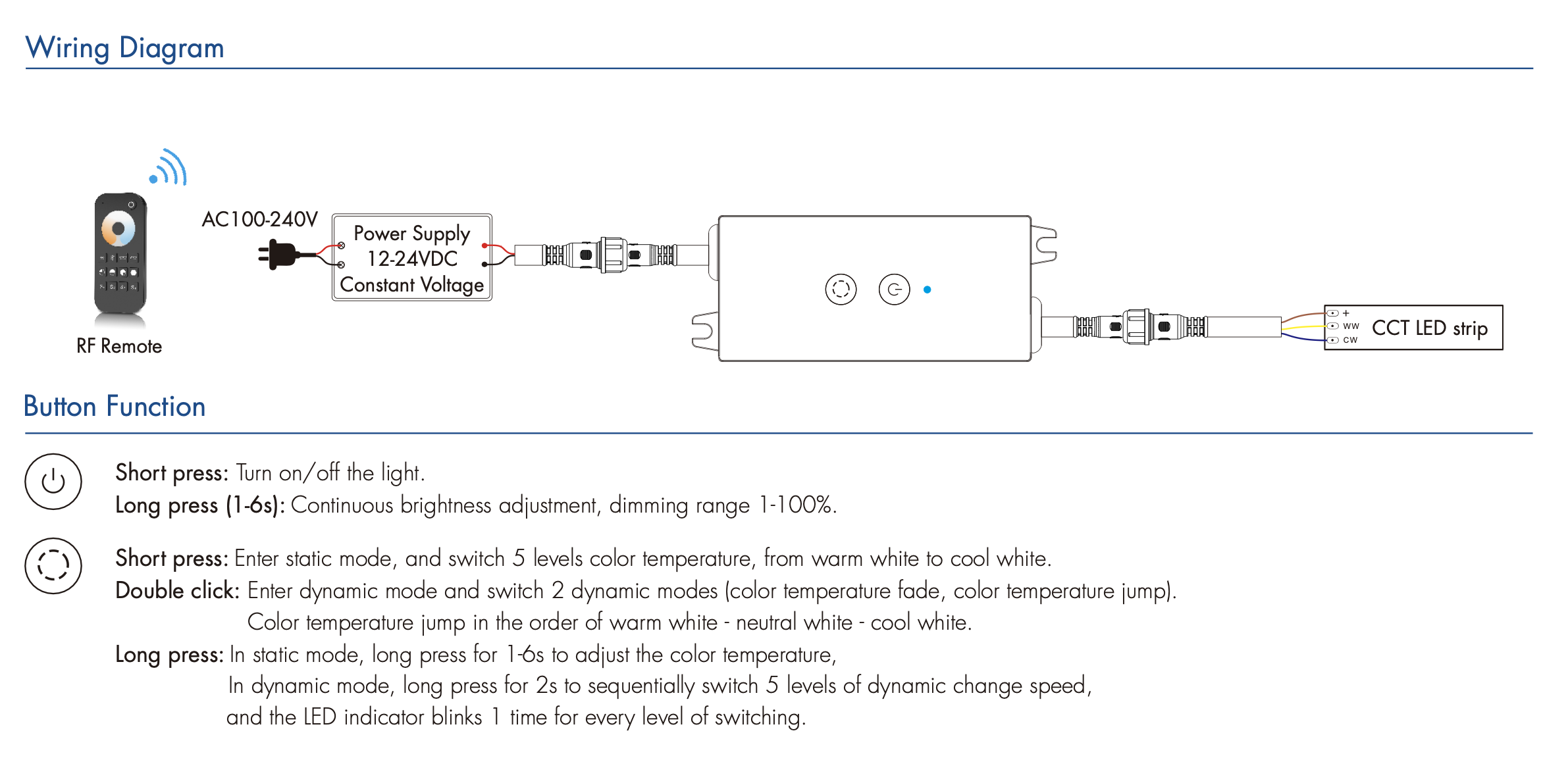 - Opcjonalna współpraca z pilotem RF 2.4G CCT jedno- lub wielostrefowym