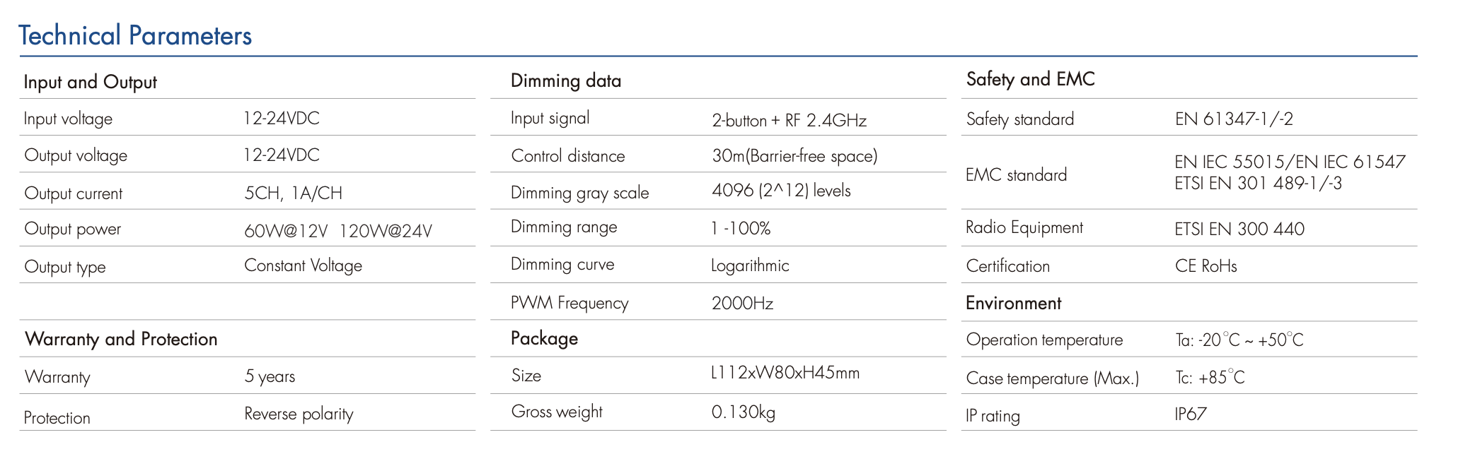 • Zgodność z normami: CE, RoHS