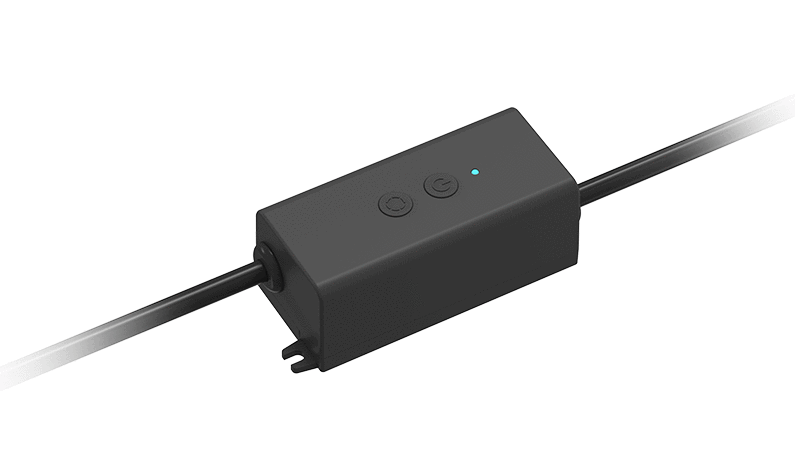 • Obsługa za pomocą 2 przycisków, funkcje: włącz/wyłącz, regulacja jasności, koloru, trybu dynamicznego oraz jego prędkości
