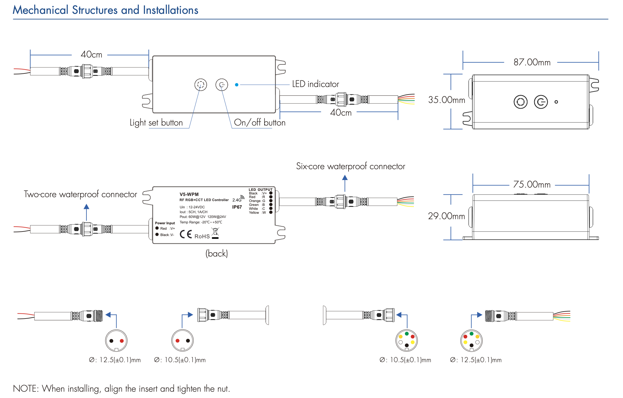 V5-WPM Sterownik LED RGBCCT Odbiornik RF + Manual IP67 SKYDANCE
