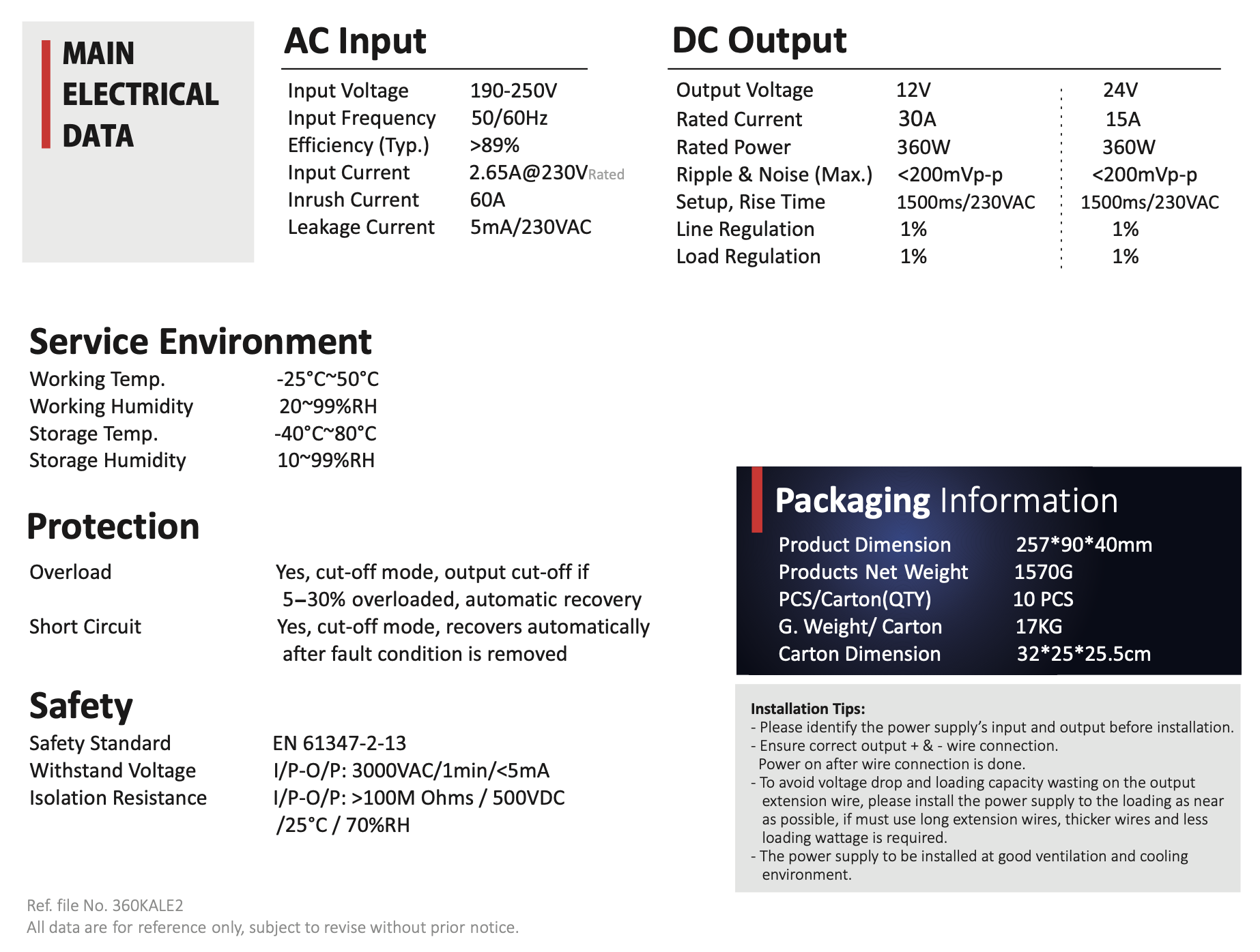 | Moc znamionowa | 360 W |