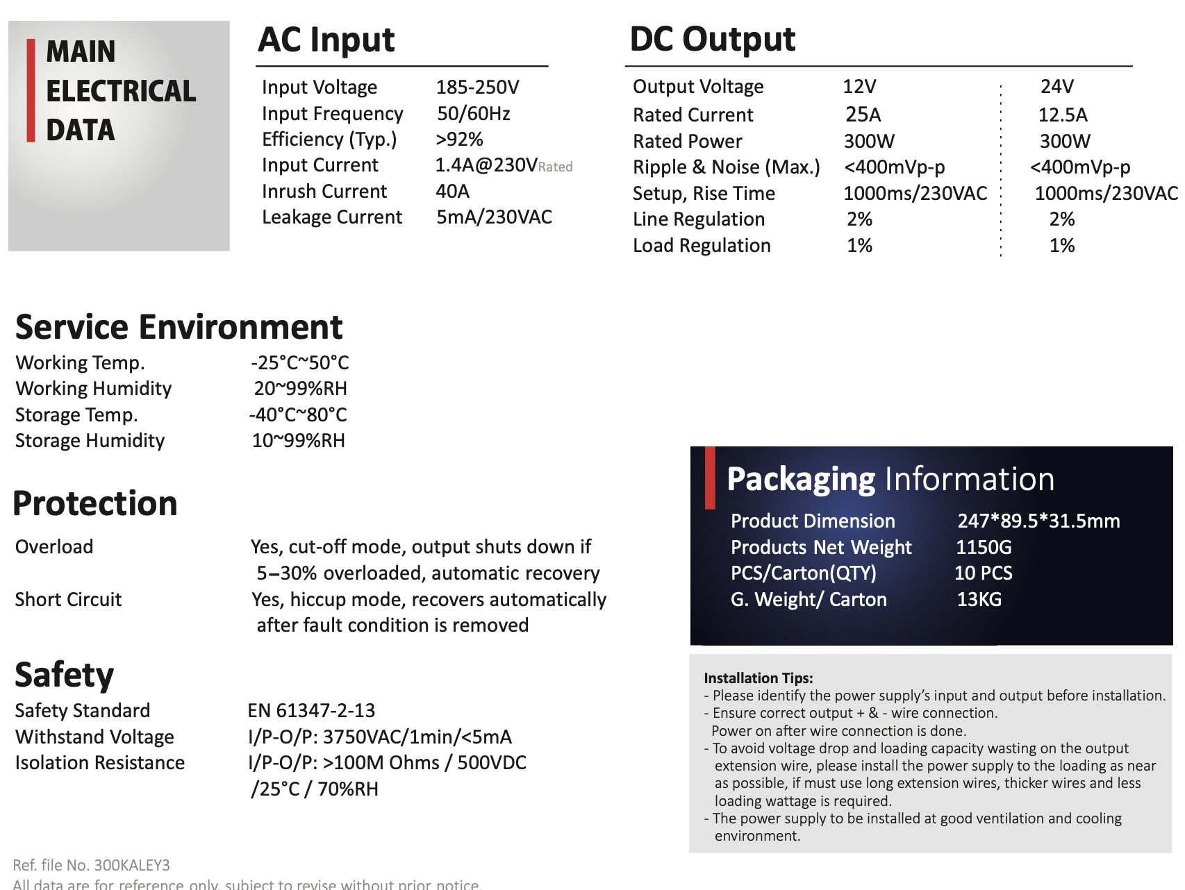 Zasilacz LED hermetyczny IP67 12V 300W JLV-12300KA-L JINBO 5 lat gwarancji