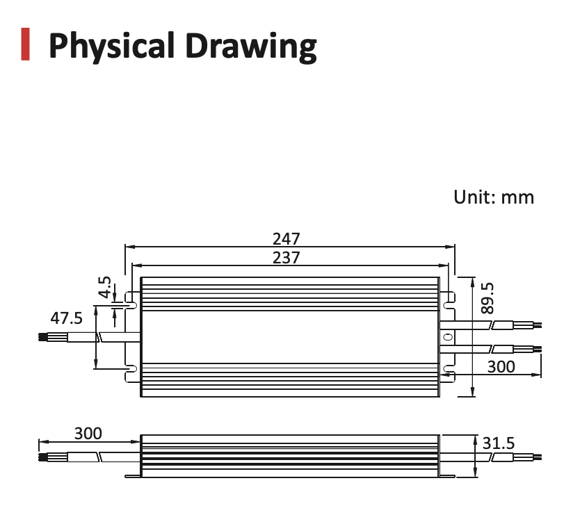 Wymiary zewnętrzne: 247*89.5*31.5mm (L*W*H)