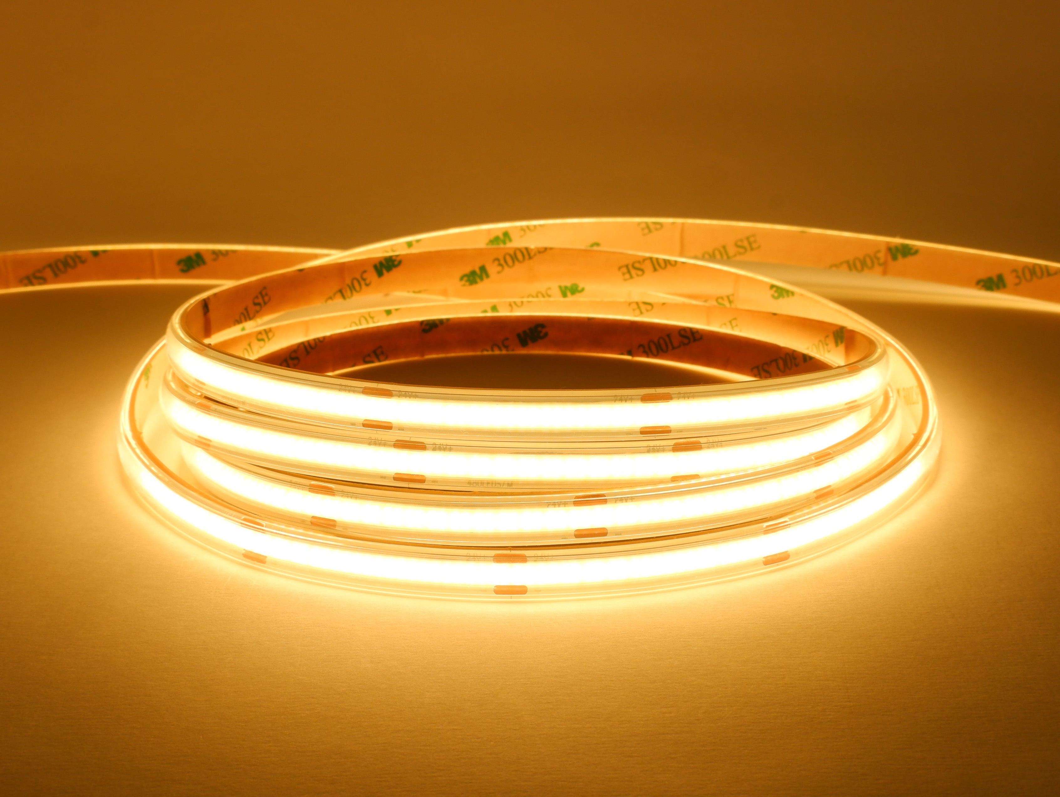 Taśma LED COB Ciepła Biała 2700K 10,5W 24V 480LED CRI90 9mm IP66 480COB-24/10-9/5-R2R-IP66 927
