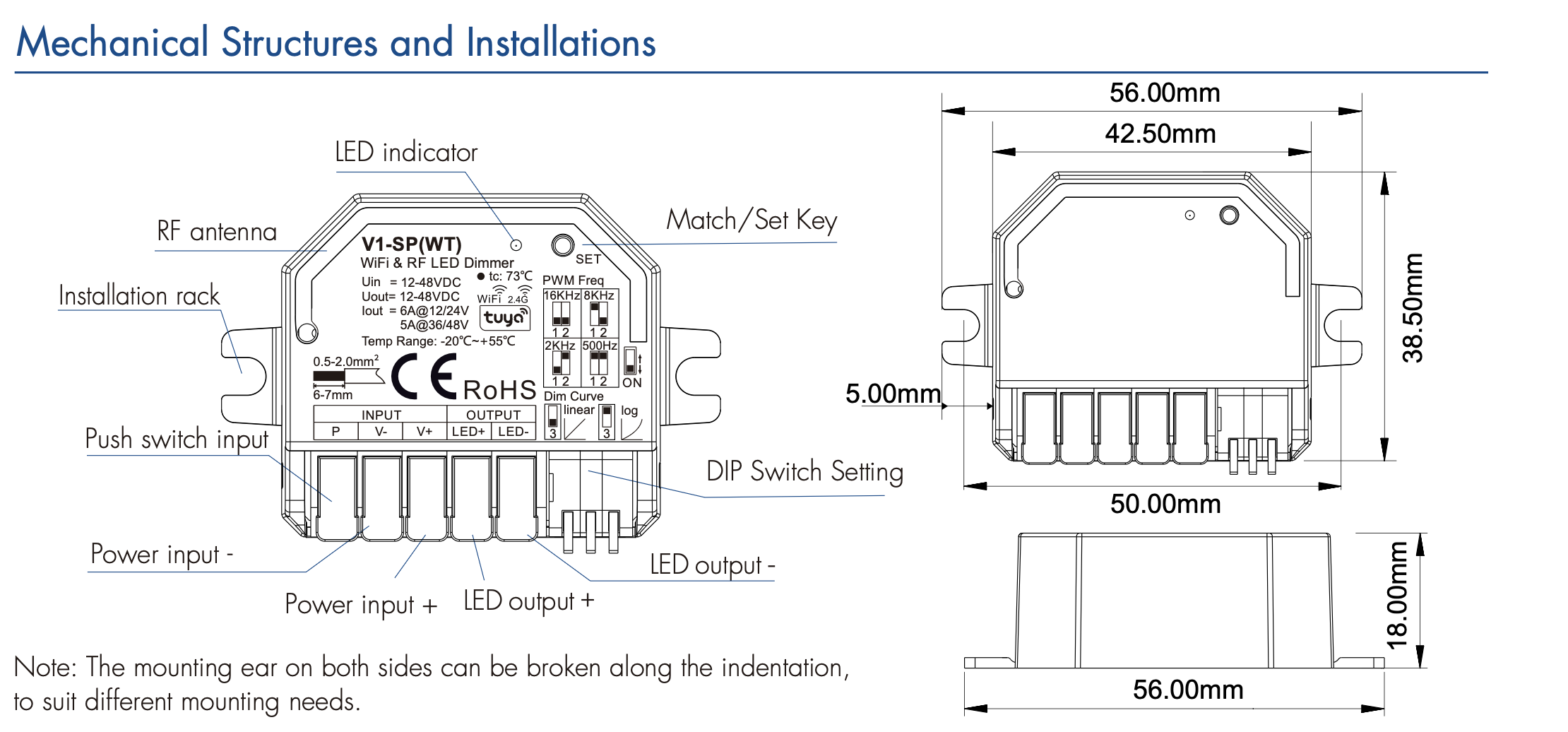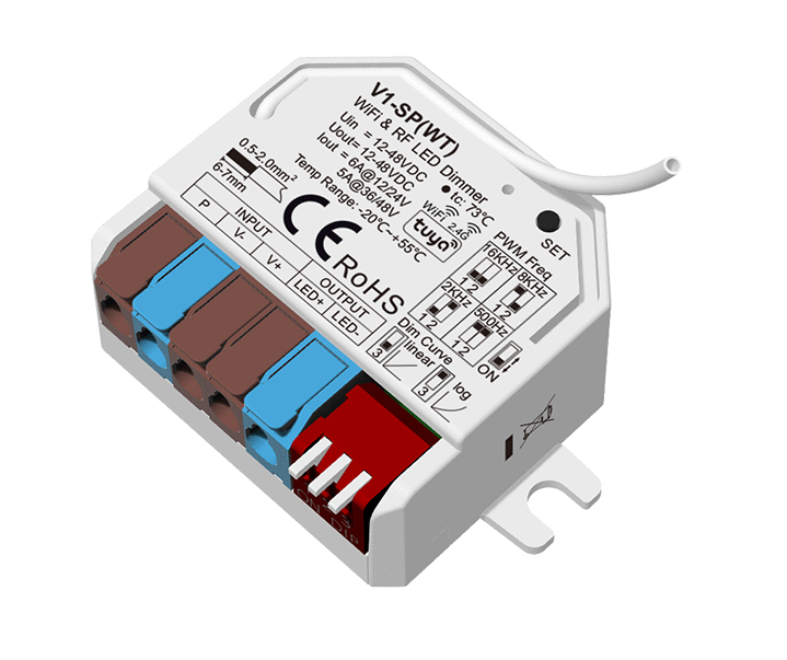 - Miniaturowy, jednokanałowy, stałonapięciowy sterownik LED RF &WiFi