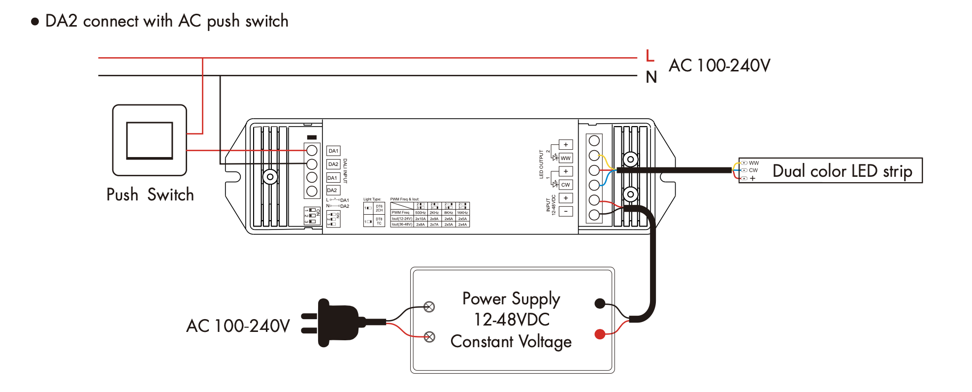 DA2 Sterownik DALI DT6/DT8 Push-DimAC SKYDANCE