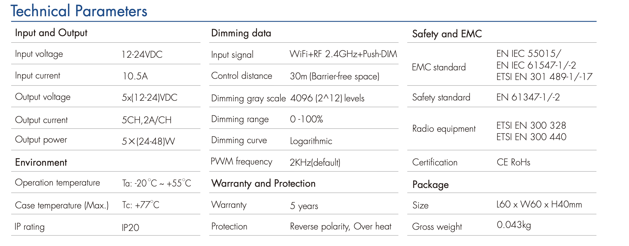| Rodzaj sterowania | RF+WiFi+PushDimDC |