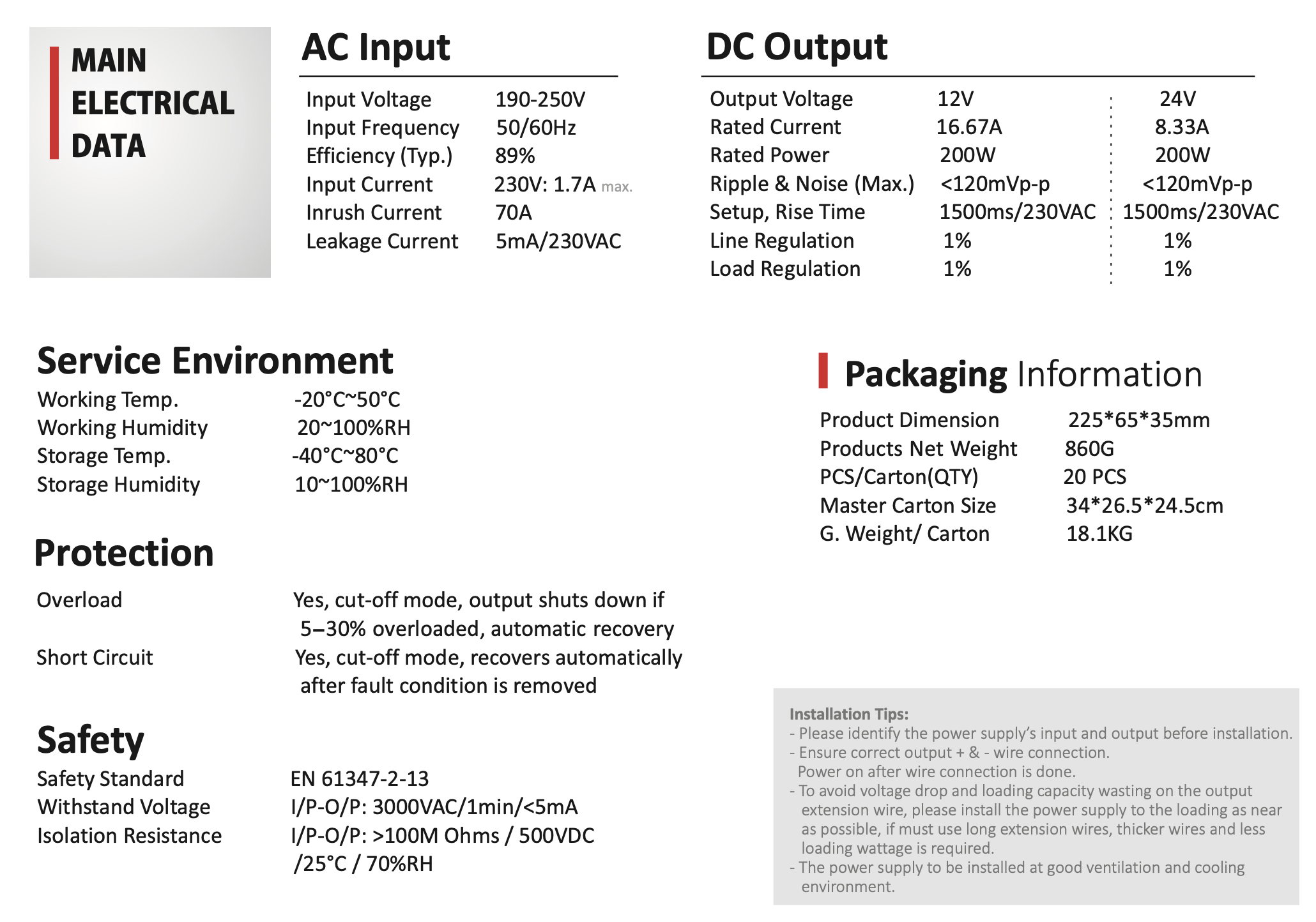 Napięcie zasilania: 190-250 VAC