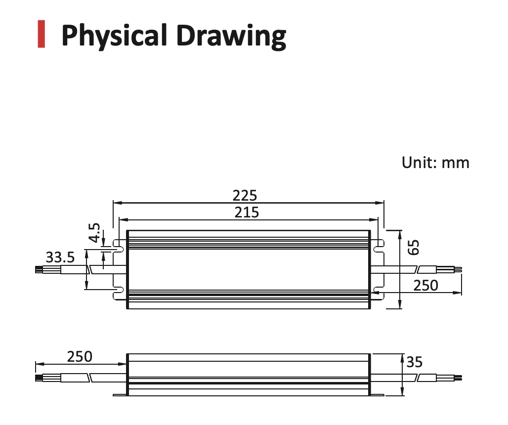 Wymiary zewnętrzne: 225x65x35mm (L*W*H)