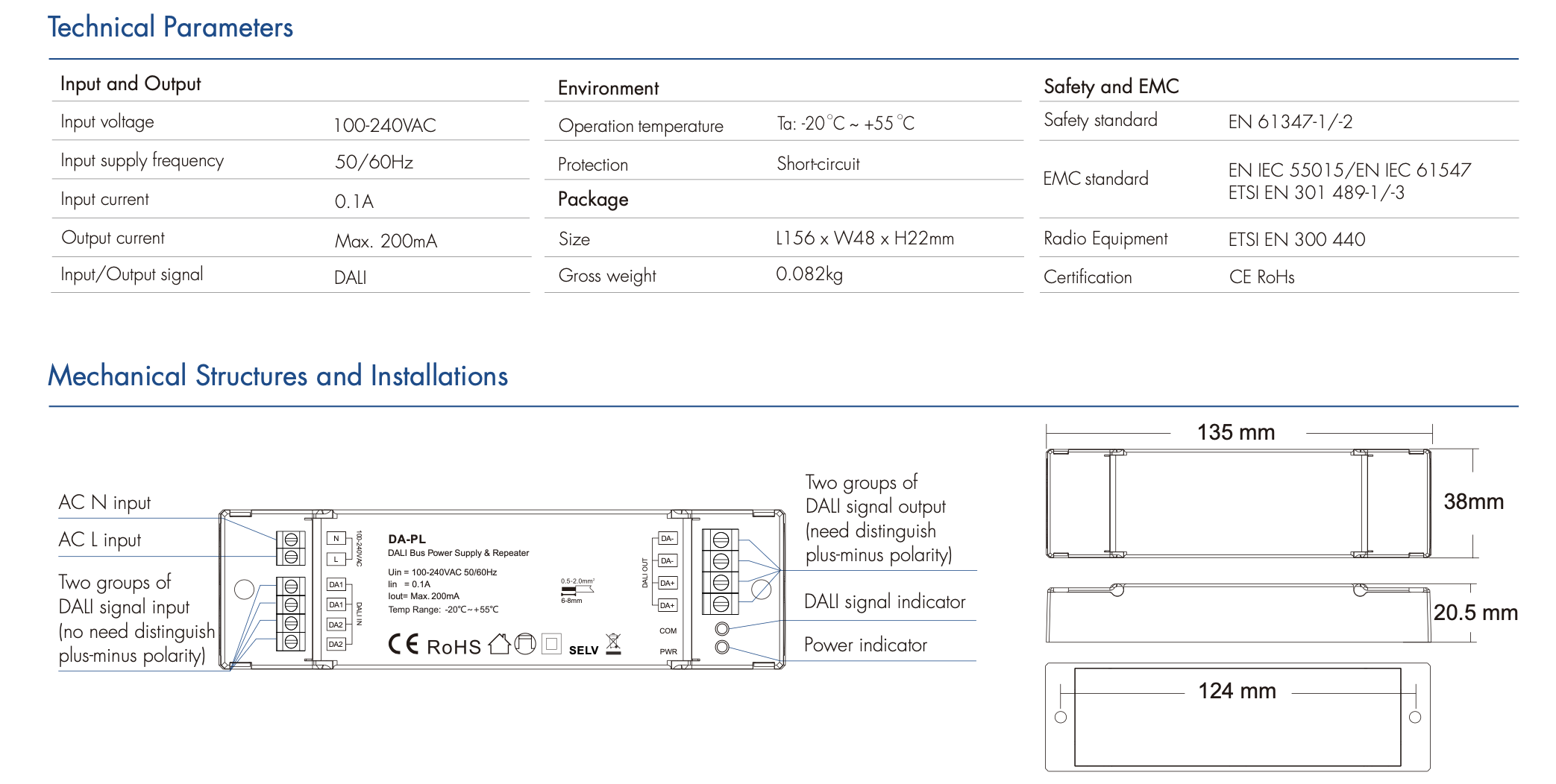 DA-PL Zasilacz DALI bus & Wzmacniacz SKYDANCE