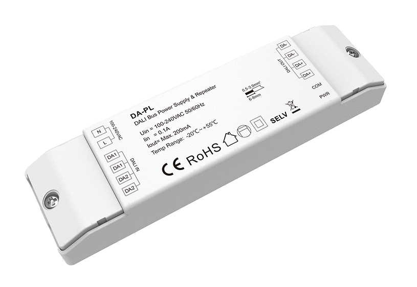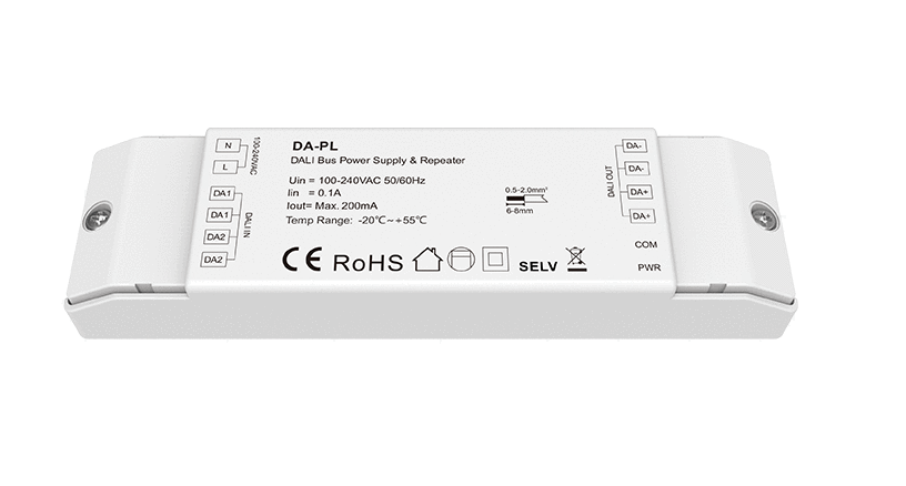 DA-PL to powtórnik/wzmacniacz DALI sygnału z zintegrowanym zasilaniem DALI.
