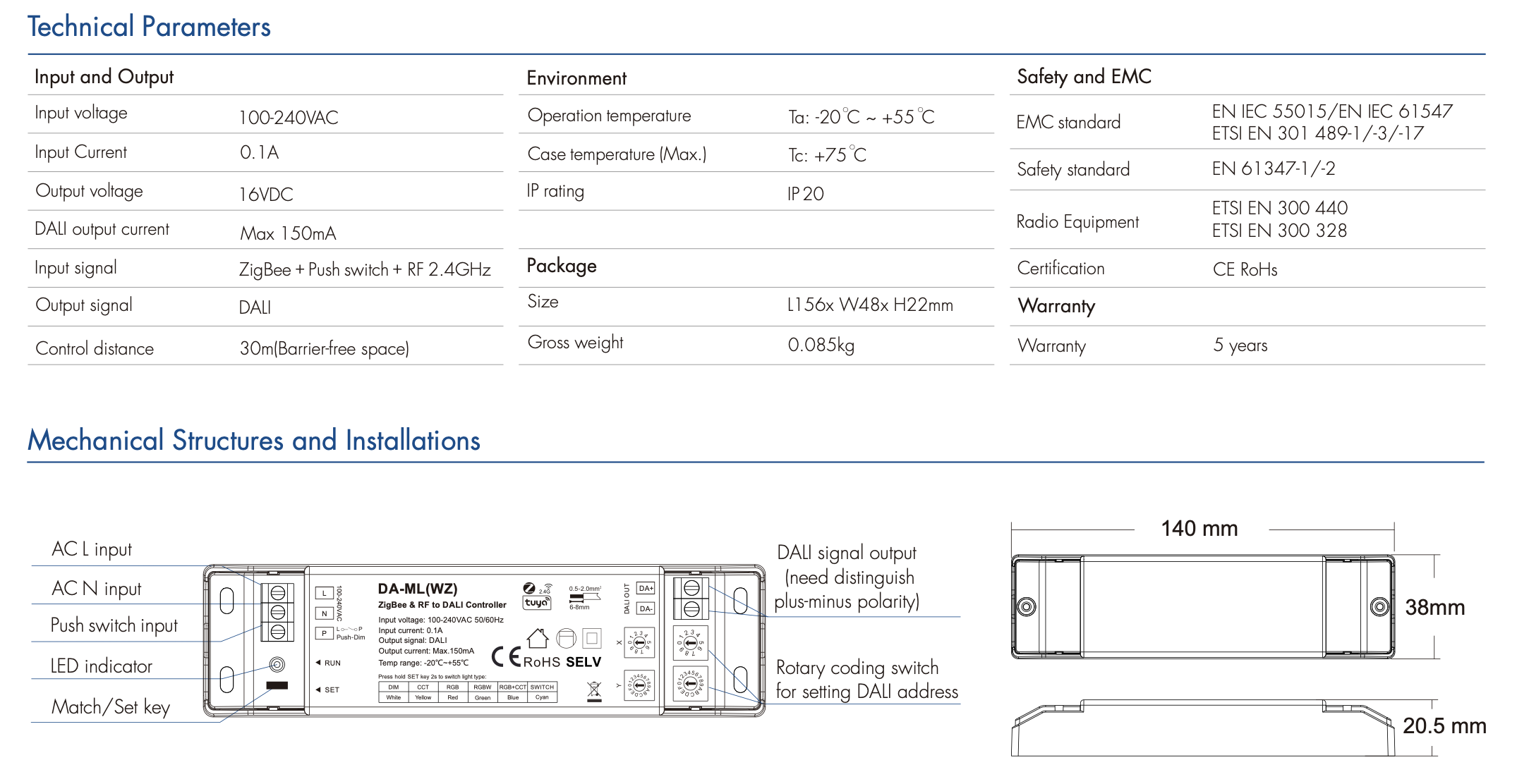 DA-ML(WZ) Sterownik DALI Konwerter RF & ZigBee to DALI SKYDANCE