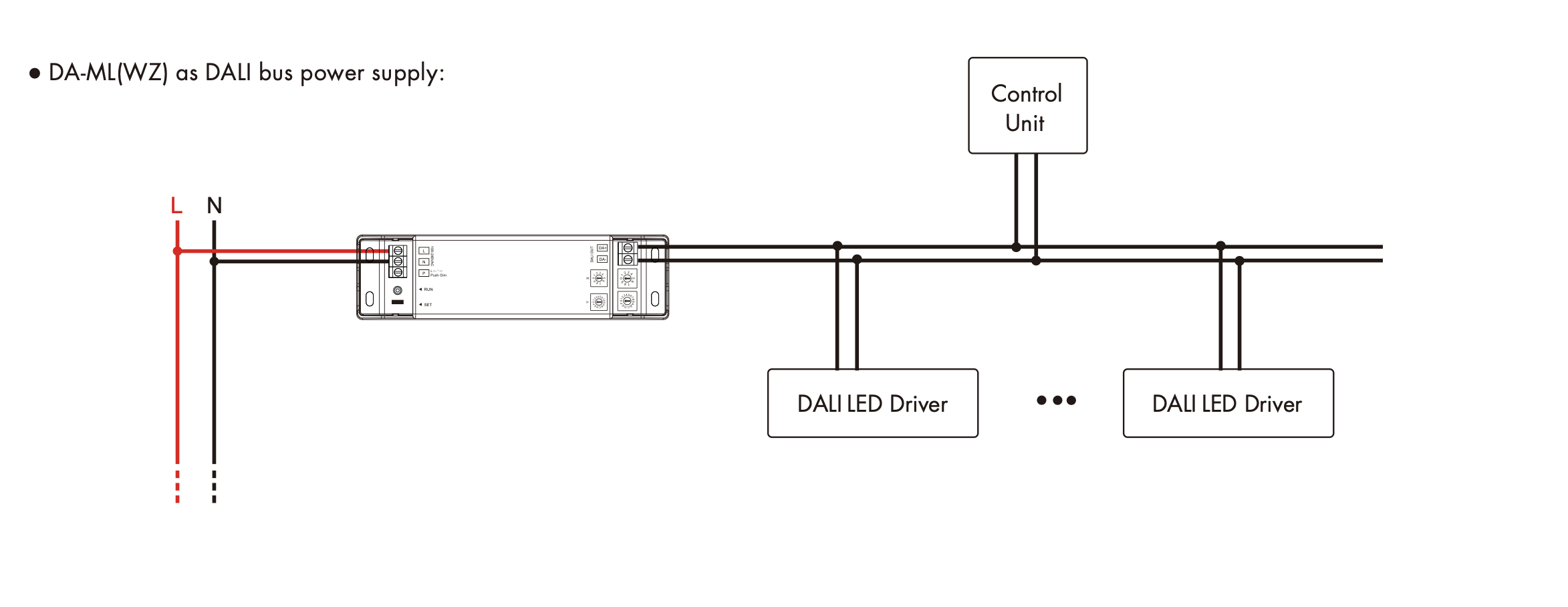 • Może być używany jako zasilacz magistrali DALI