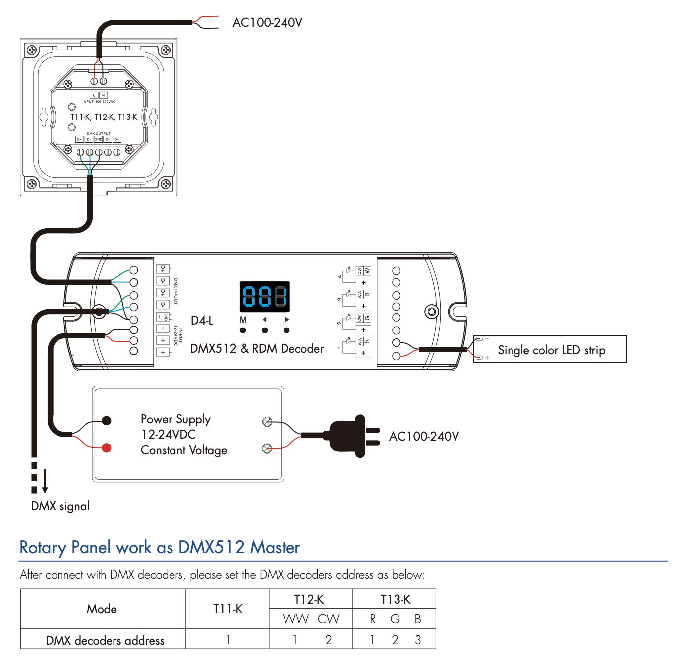 T11-K(W) Panel LED RF+DMX512 Ściemniacz obrotowy 1-Strefowy SKYDANCE