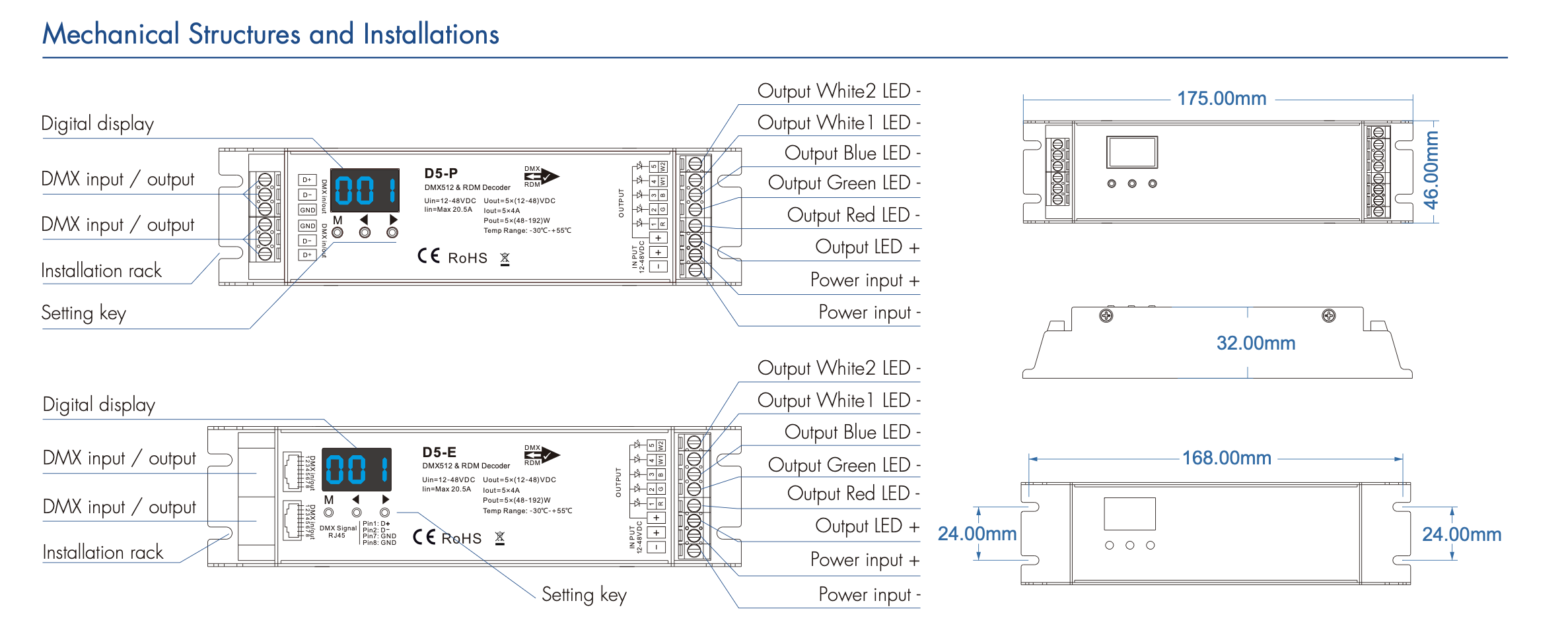 D5-P Dekoder DMX512 & RDM 4A*5CH 12-24V DC SKYDANCE