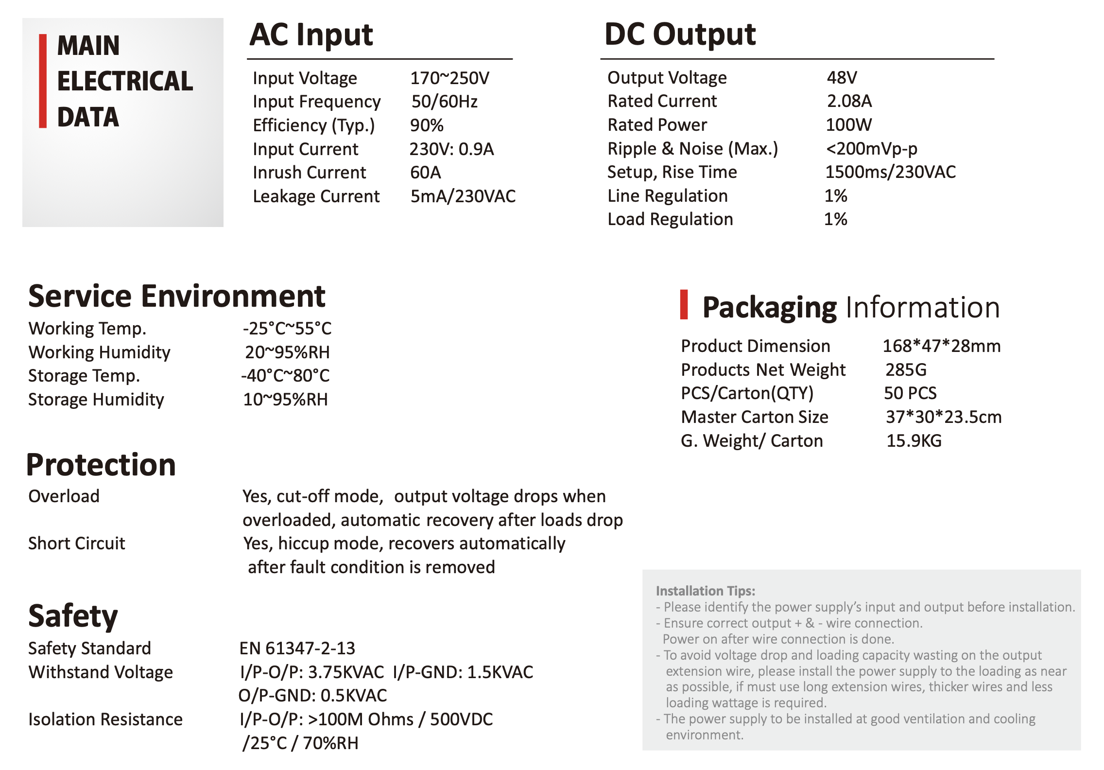 | Napięcie wyjściowe | 48 VDC |