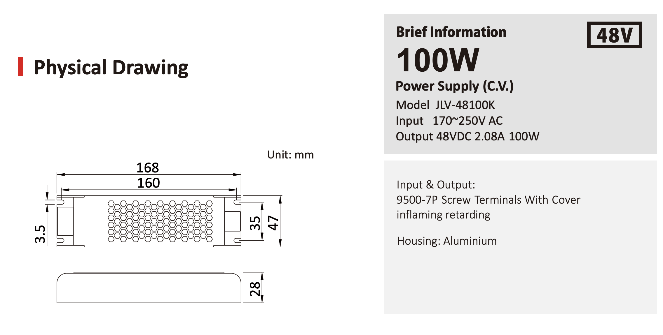 Wymiary zewnętrzne: 168x47x28mm (L*W*H)