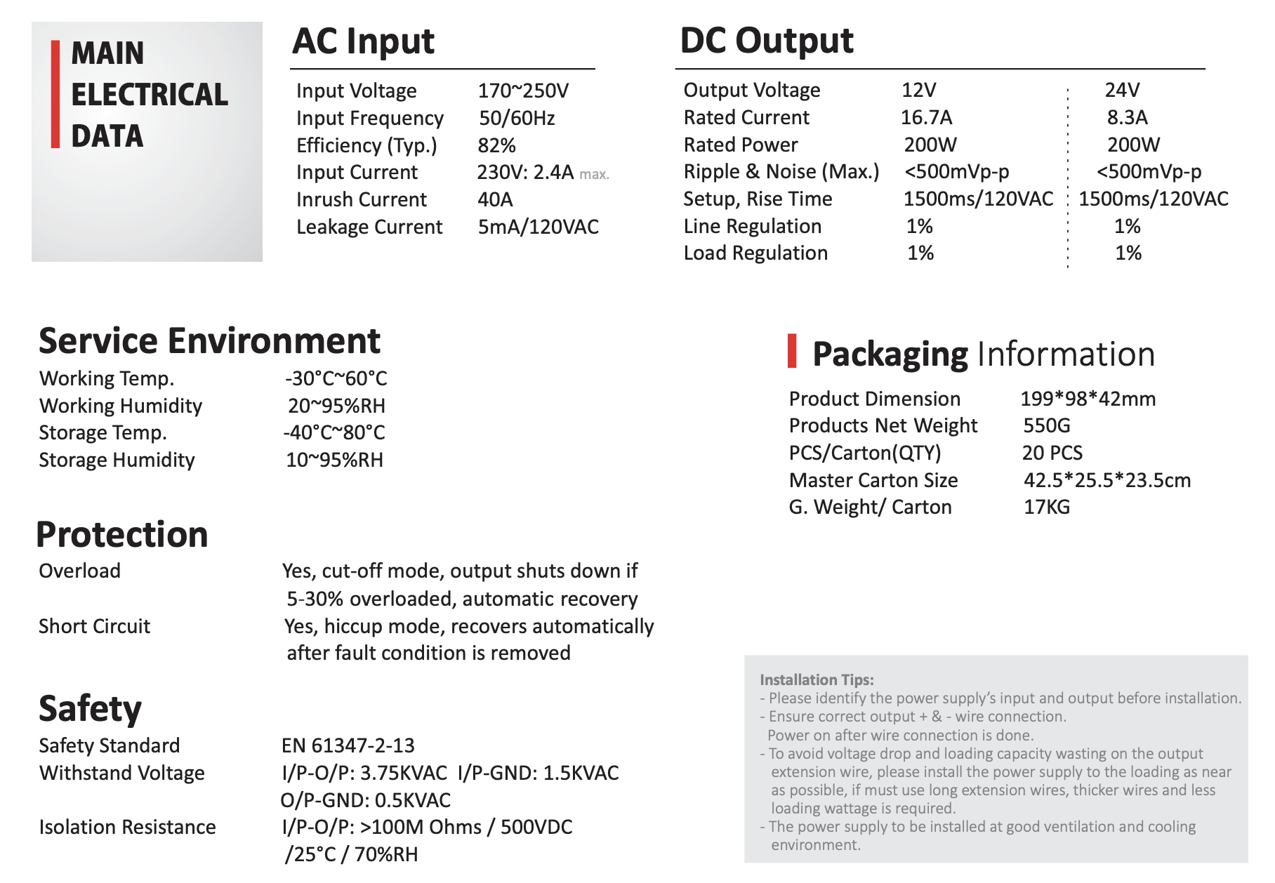 Wymiary zewnętrzne: 199x98x42mm (L*W*H)