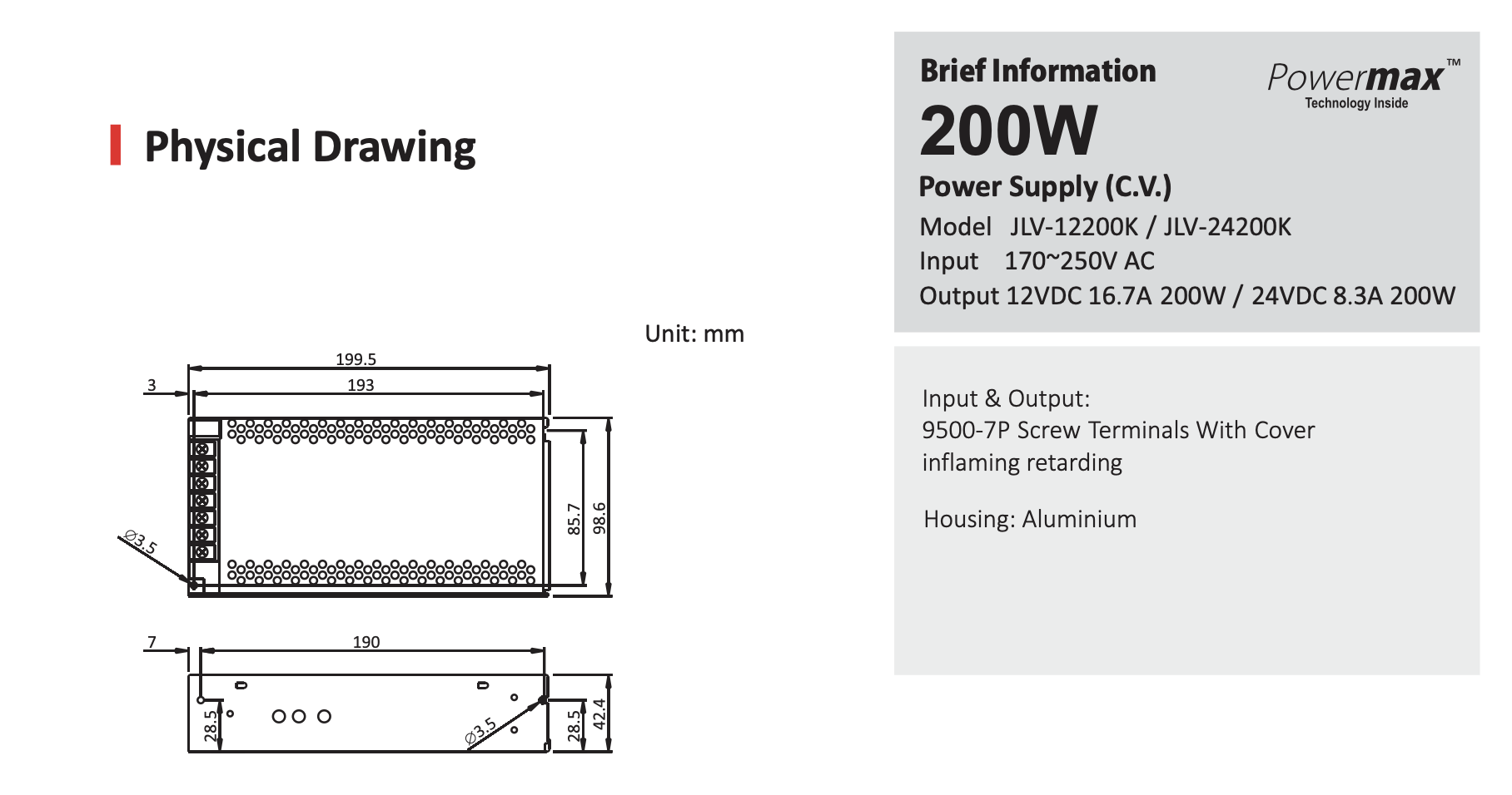 Zasilacz LED modułowy IP20 12V 200W JLV-12200K JINBO 5 lat gwarancji