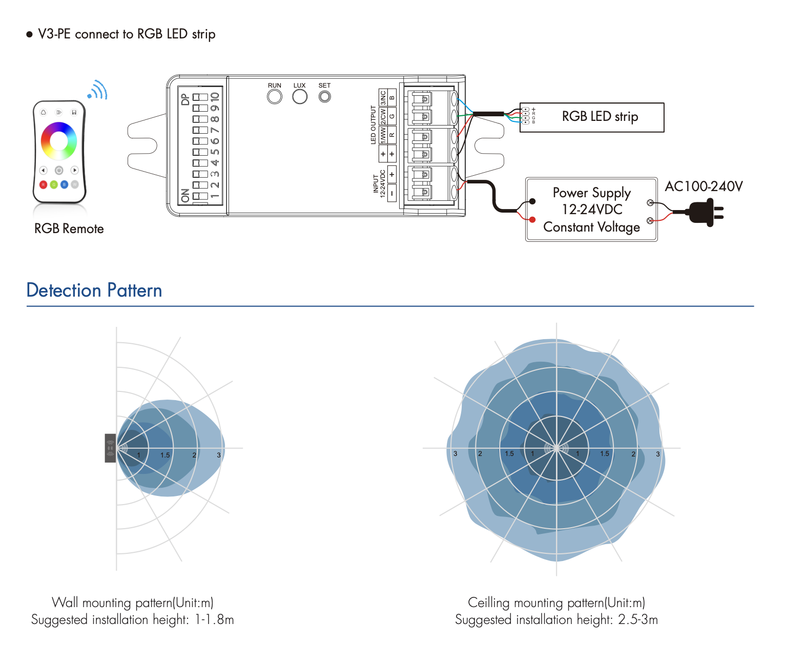 V3-PE Mikrofalowy czujnik obecności z sterownikiem RF 3-w-1 SKYDANCE