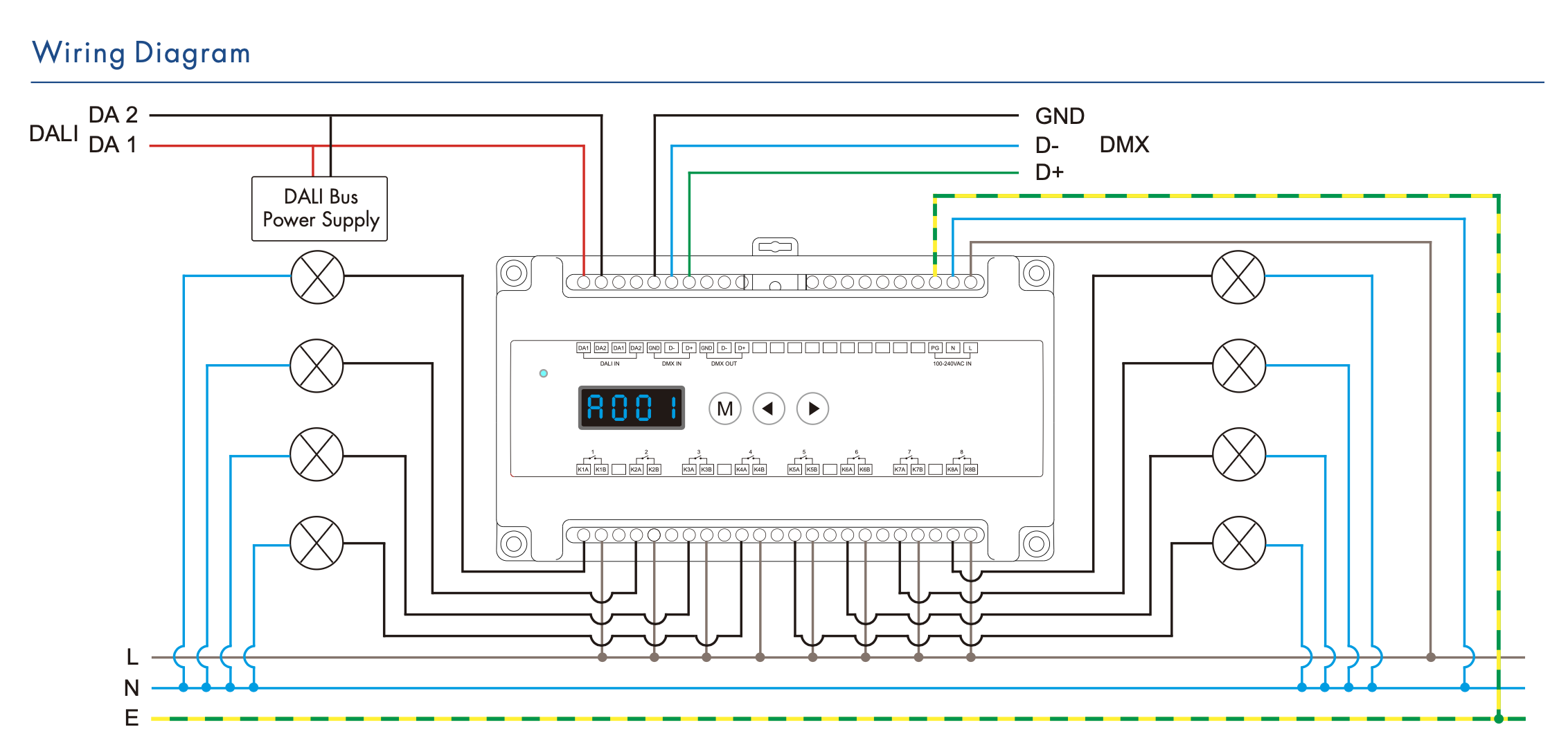 - Trzy tryby pracy: tryb DALI, tryb DMX oraz tryb manualny
