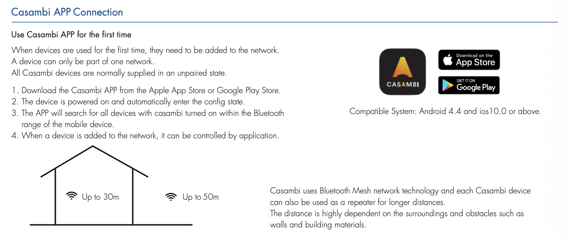 Sterownik może posłużyć jako urządzenie autonomiczne (nie wymaga pilota!) poprzez łączność z telefonem, za pomocą aplikacji Casambi, lub współpracować z pilotami, lub naściennymi nadajnikami (panelami) RF.
