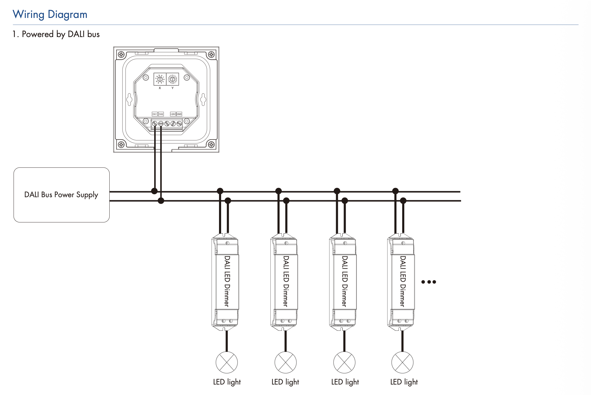 - DALI bus: 17mA@16VDC, 2mA@24VDC