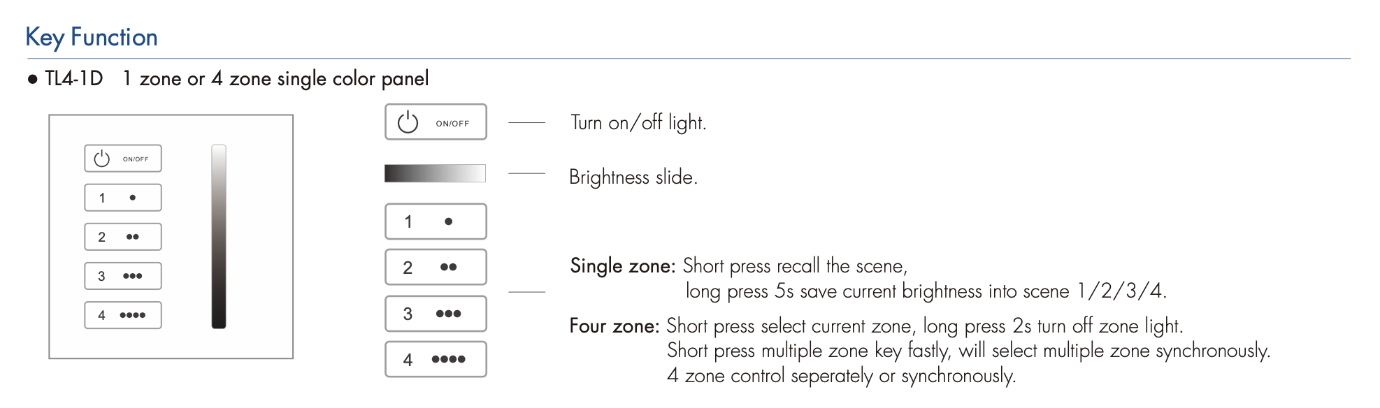Panel LED TL4-1D(W) Mono Dotykowy Biały 4-strefy lub 4-sceny.