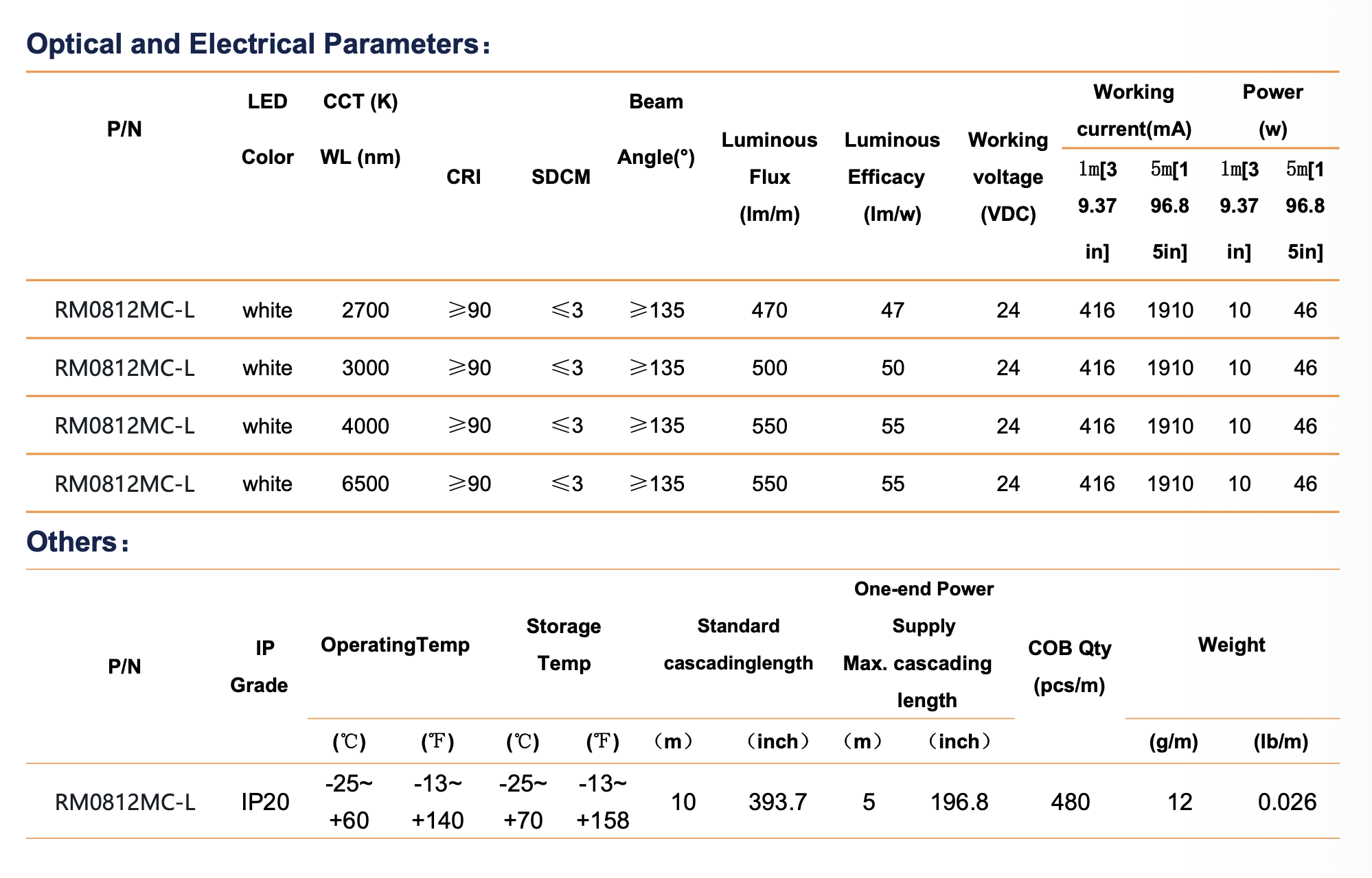 | CRI, Ra | 90+ |
