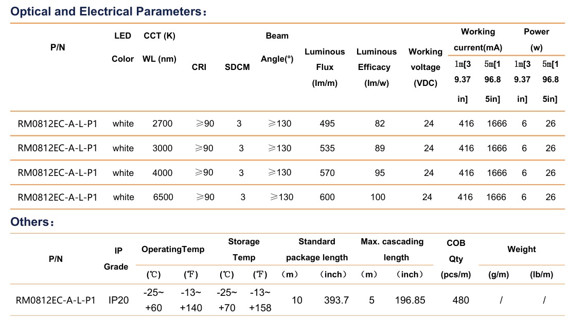 Najważniejsze cechy taśmy LED COB 24V Rishang RM0812EC-A-L-P1