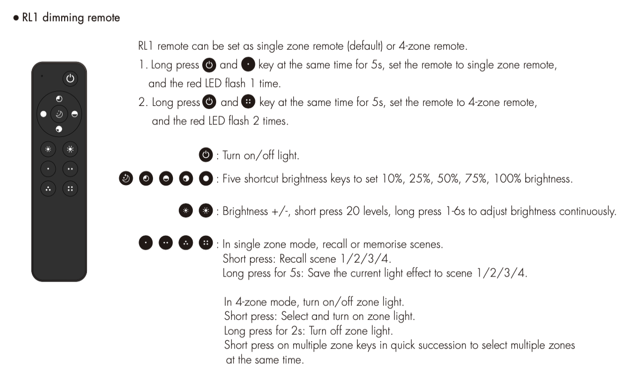 RL1(B) Pilot RF Ściemniacz LED 4-Strefy lub 4-Sceny Czarny SKYDANCE