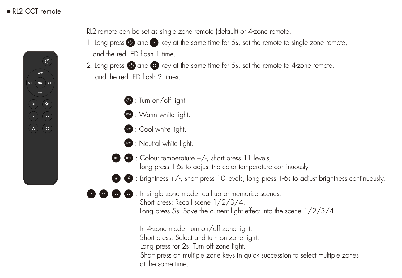 RL2(B) Pilot RF LED CCT 4-Strefy lub 4-Sceny Czarny 3V (AAAx2) SKYDANCE
