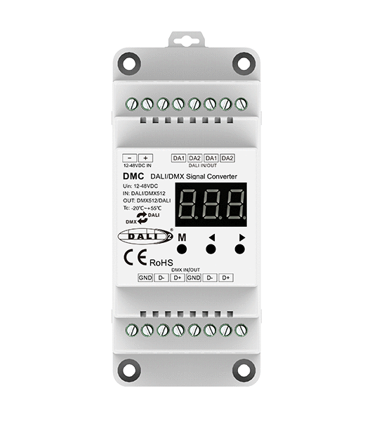 Sterownik DMC to sterownik-konwerter DALI / DMX który pozwala dwukierunkowe konwertowanie sygnału DALI oraz DMX.