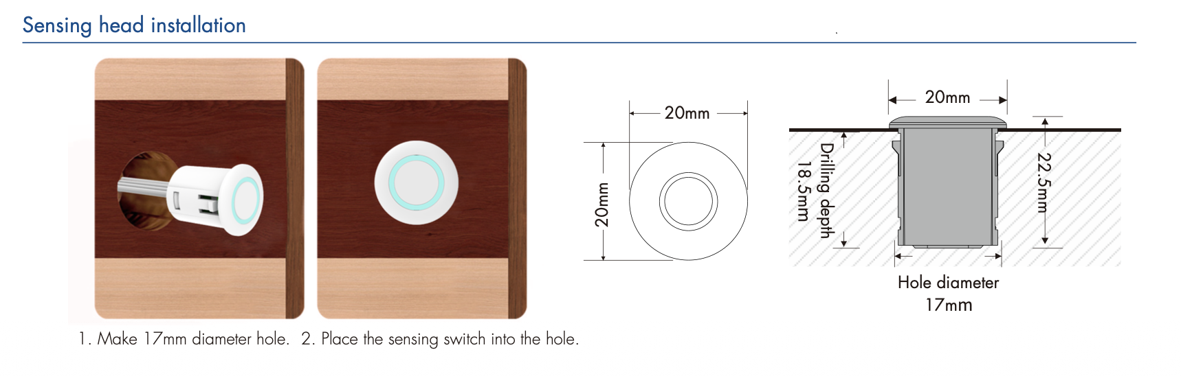 - Ukryta głowica dotykowa (czujnik dotyku niewidoczny po montażu)