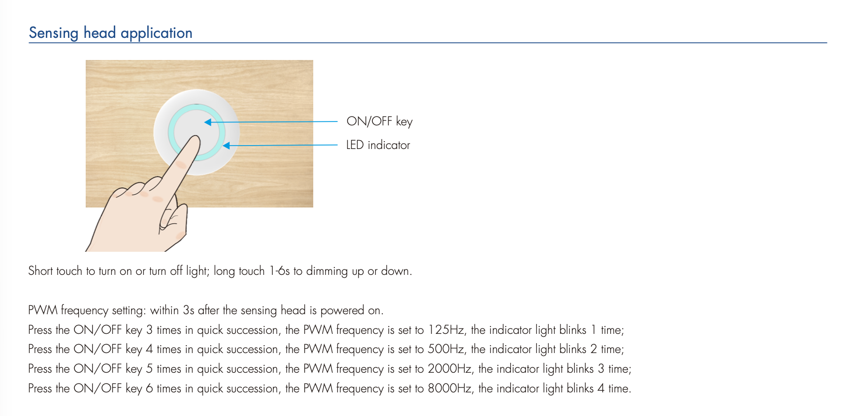 - Włączanie/wyłączanie światła oraz regulacja jasności za pomocą głowicy dotykowej;