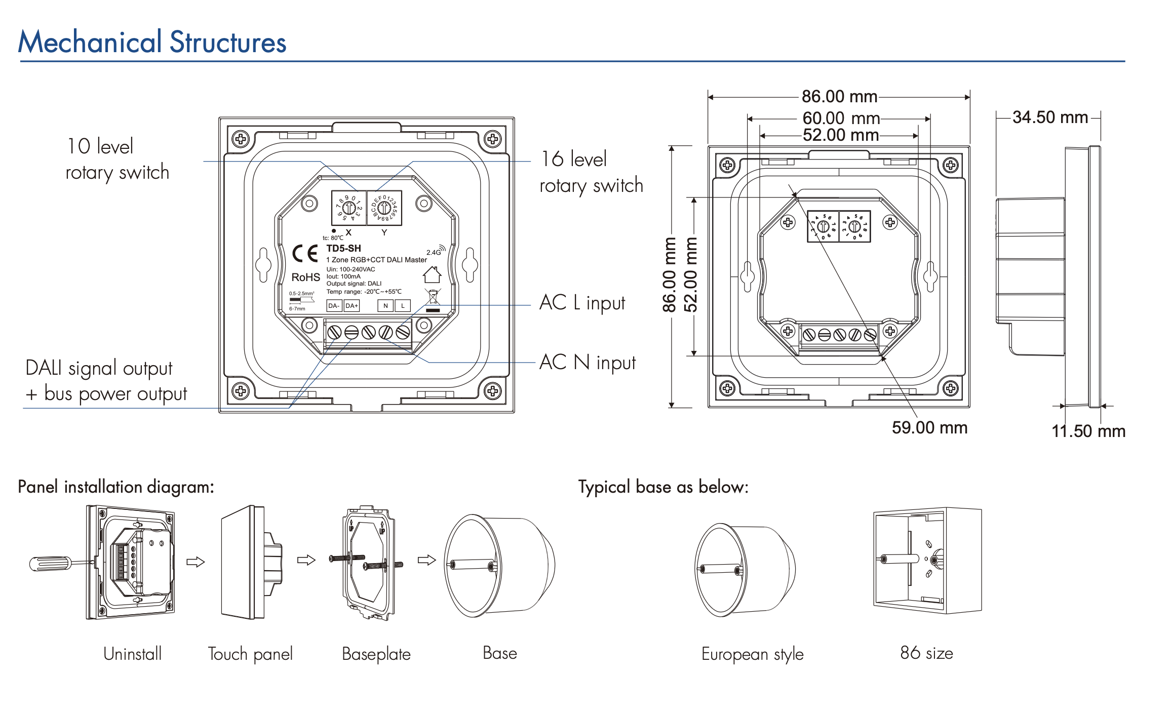 TD1-SH(W) Panel LED DALI MONO Dotykowy&RF 100-240 VAC 1-Strefowy SKYDANCE