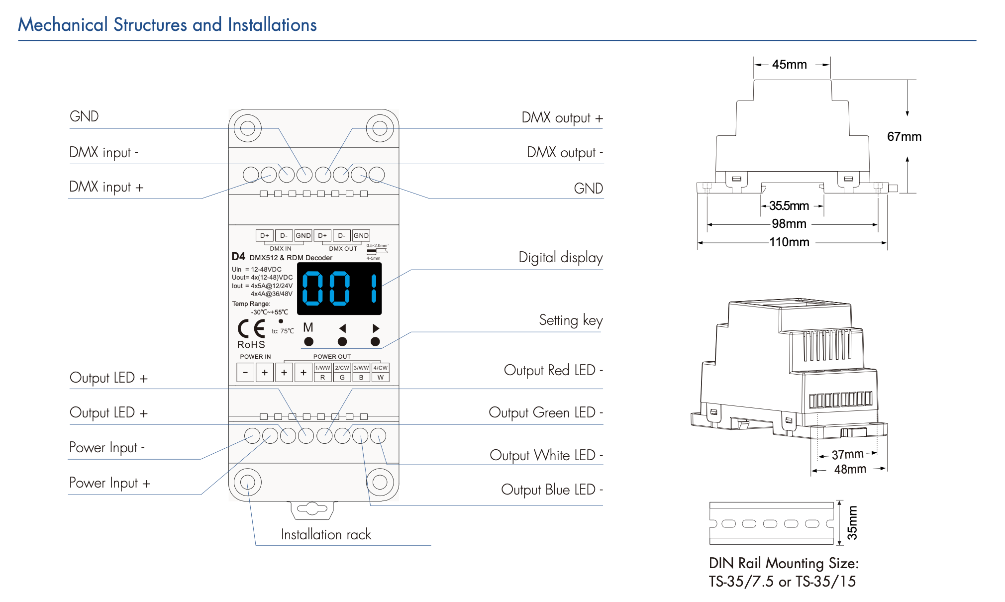 D4(B) Dekoder DMX512 & RDM DIN-Rail SKYDANCE