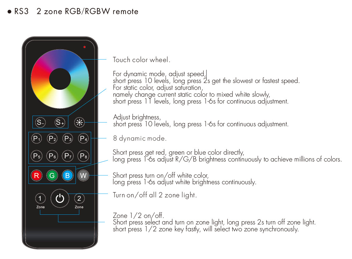 RS3 Pilot RF LED RGB/RGBW 2-Strefowy
