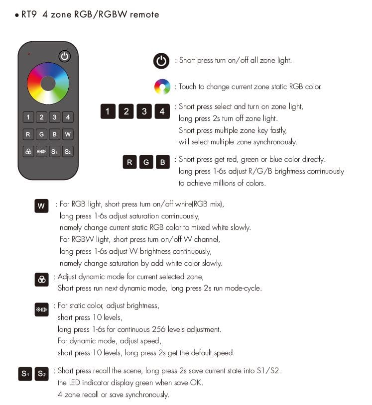 RT9 Pilot RF LED RGB/RGBW 4-Strefowy