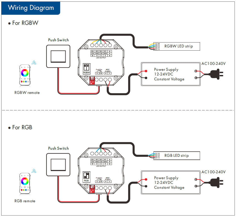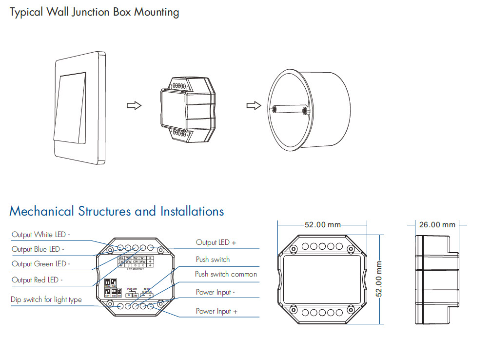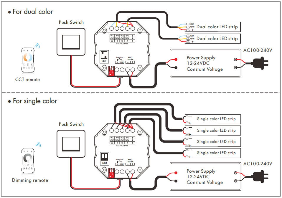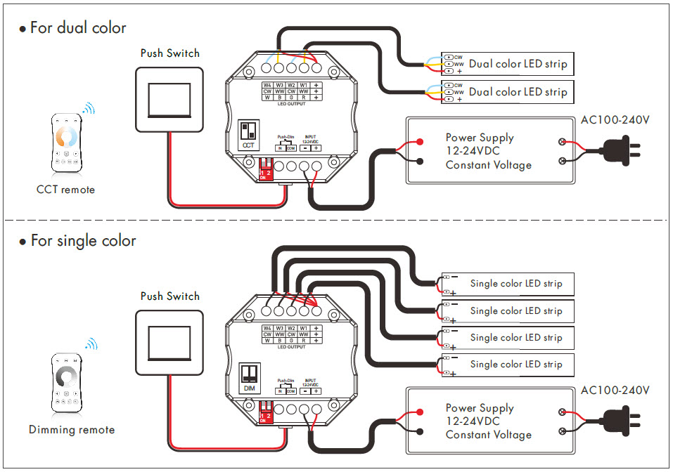 • Jest kompatybilny z całą gamą różnego rodzaju pilotów zdalnego sterowania, panele naścienne RF mono/CCT/RGB/RGBW. Dostępne na innych naszych aukcjach.