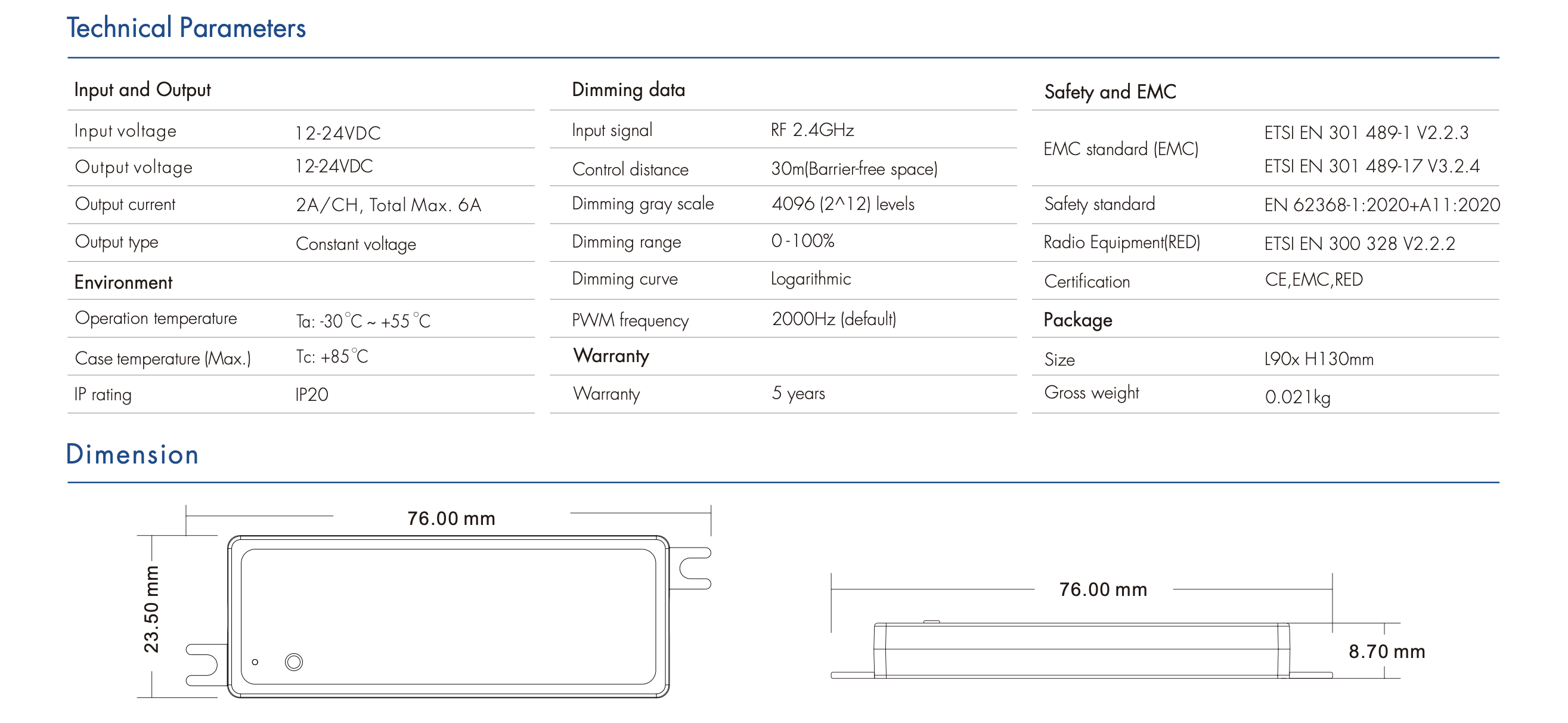 • Zgodność z normami: CE,EMC,RED