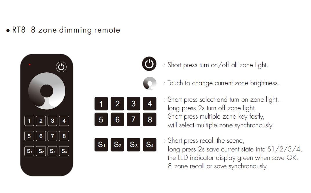RT8 Pilot RF Ściemniacz LED 8-Strefowy