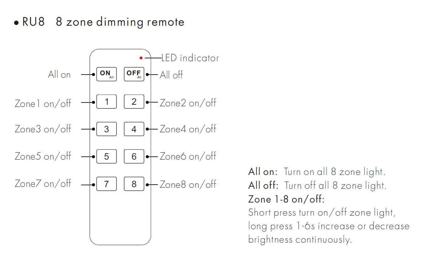 8 - strefowy pilot radiowy LED RU8 - czarny