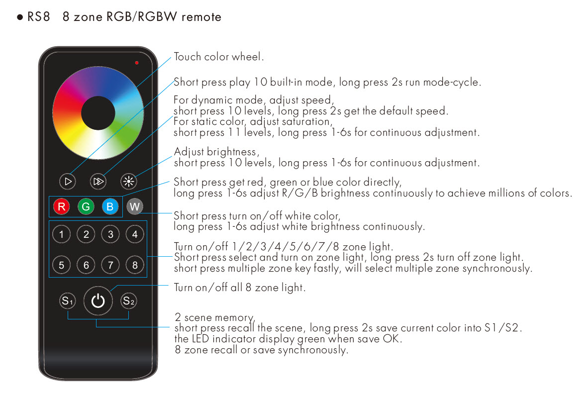 RS8 Pilot RF LED RGB/RGBW 8-Strefowy