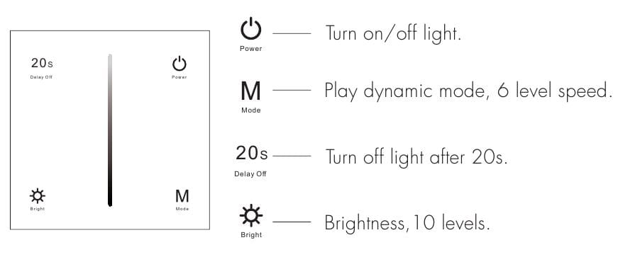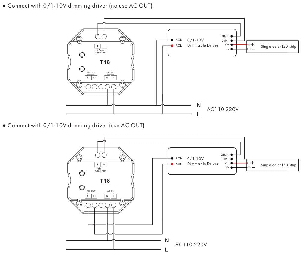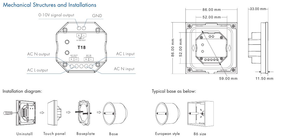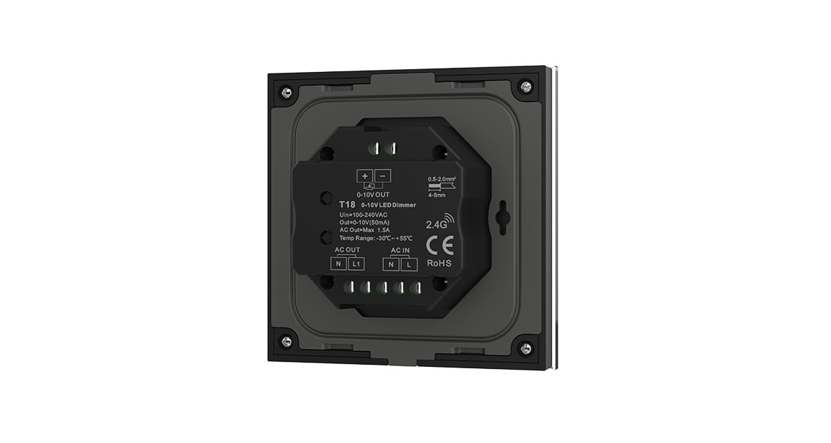 T18(B) Panel RF Ściemniacz LED Dotykowy 1-Strefowy, Output: 0/1-10V & RF, Przekaźnik 230VAC