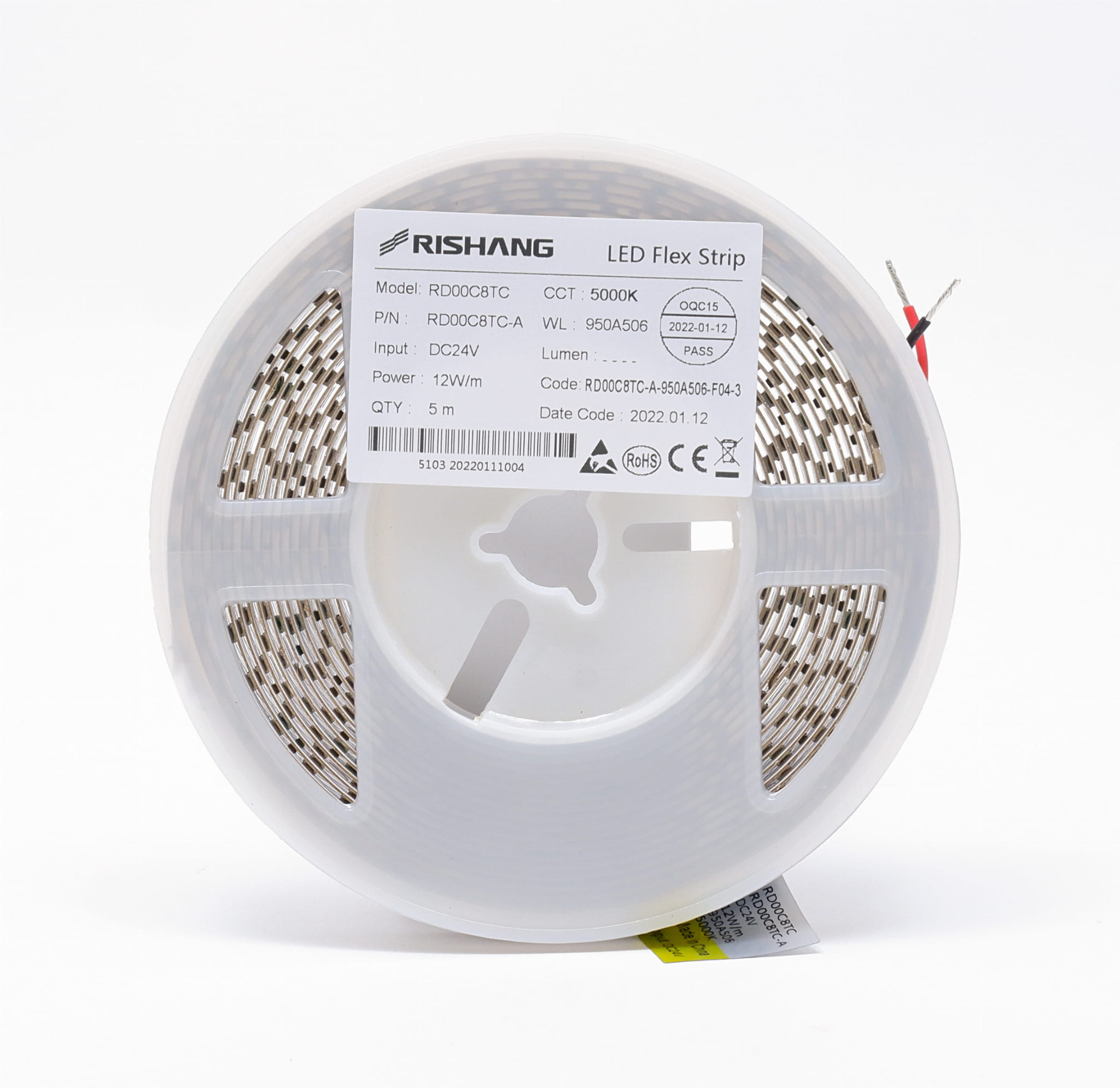 Taśma LED 24V IP20 Dzienna Zimna Biała 5000K 128LED 12W CRI90 RD00C8TC-A RISHANG 5 lat gwarancji