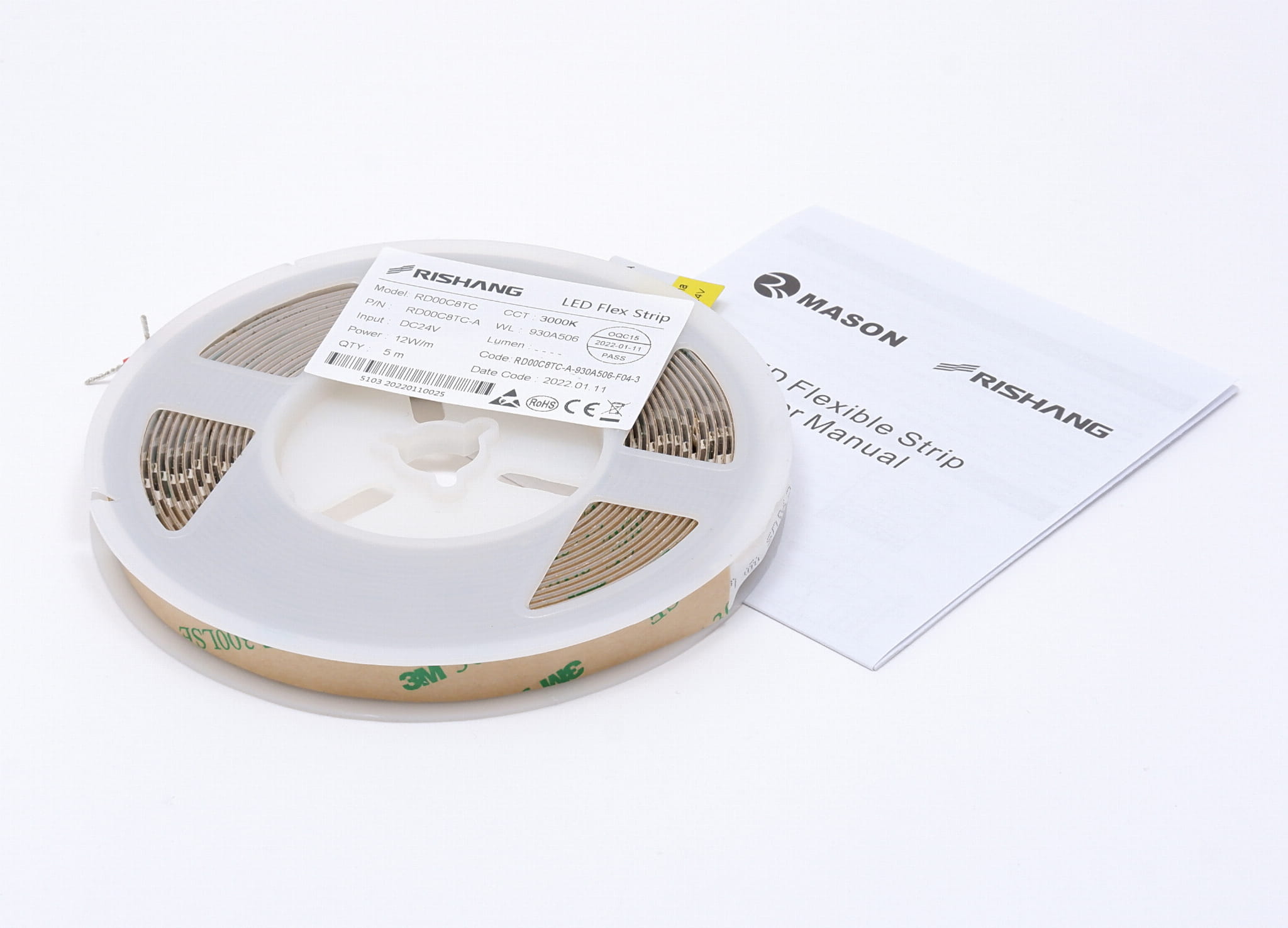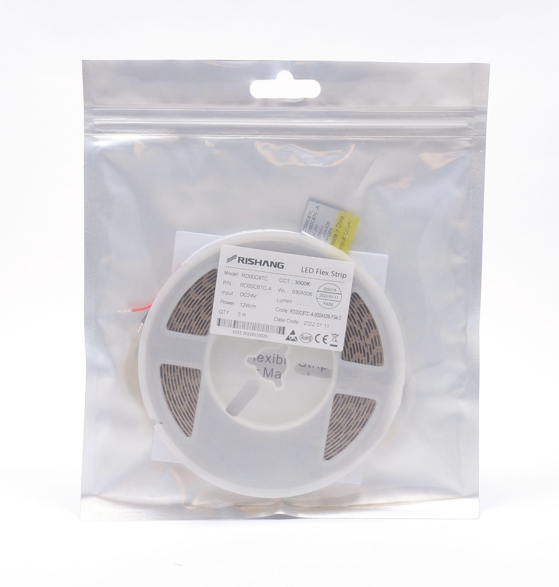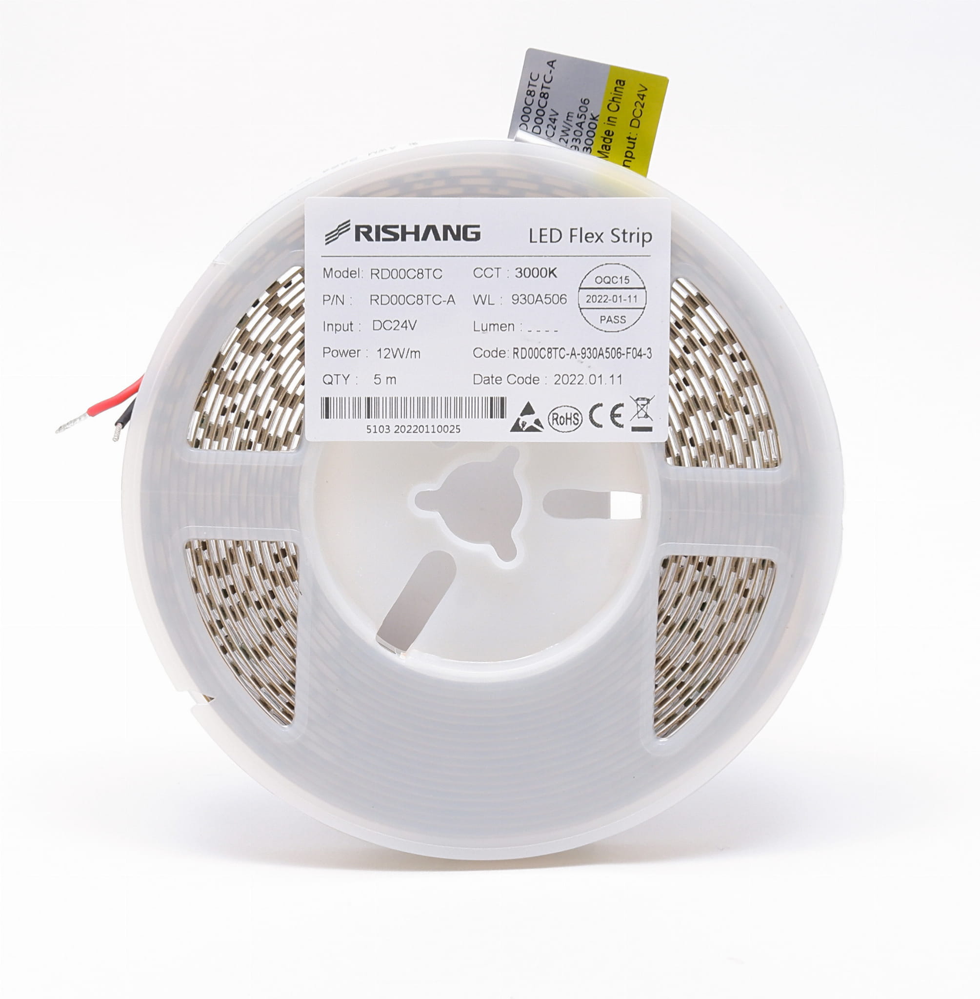 Taśma LED 24V IP20 Ciepła Biała 3000K 128LED 12W CRI90 RD00C8TC-A RISHANG 5 lat gwarancji
